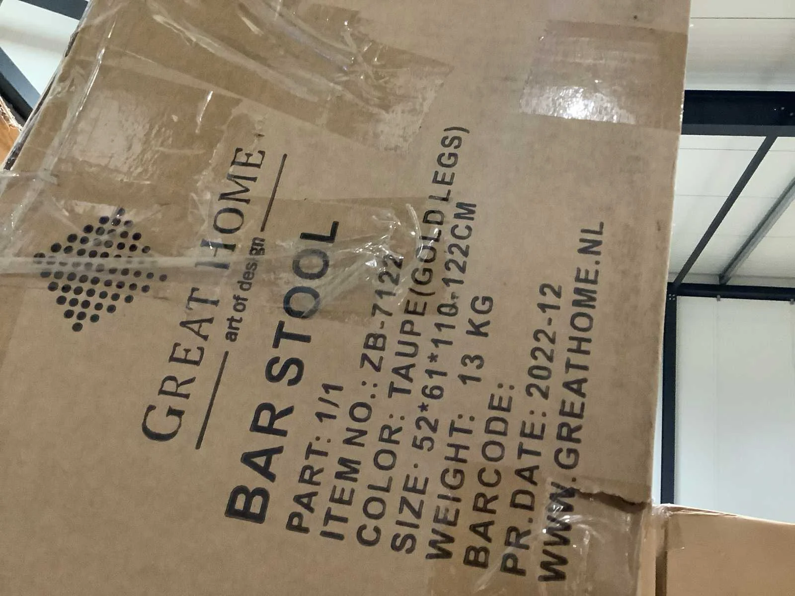 Dit betreft een product nieuw in doos. Let op: in hoogte verstelbaar. Bezorgtermijn 14 dagen Merk: Great Home Kleur: Taupe ( gold legs ) Lengte: 52cm Breedte: 61cm Hoogte: 110122cm Materiaal: Metaal / Stof