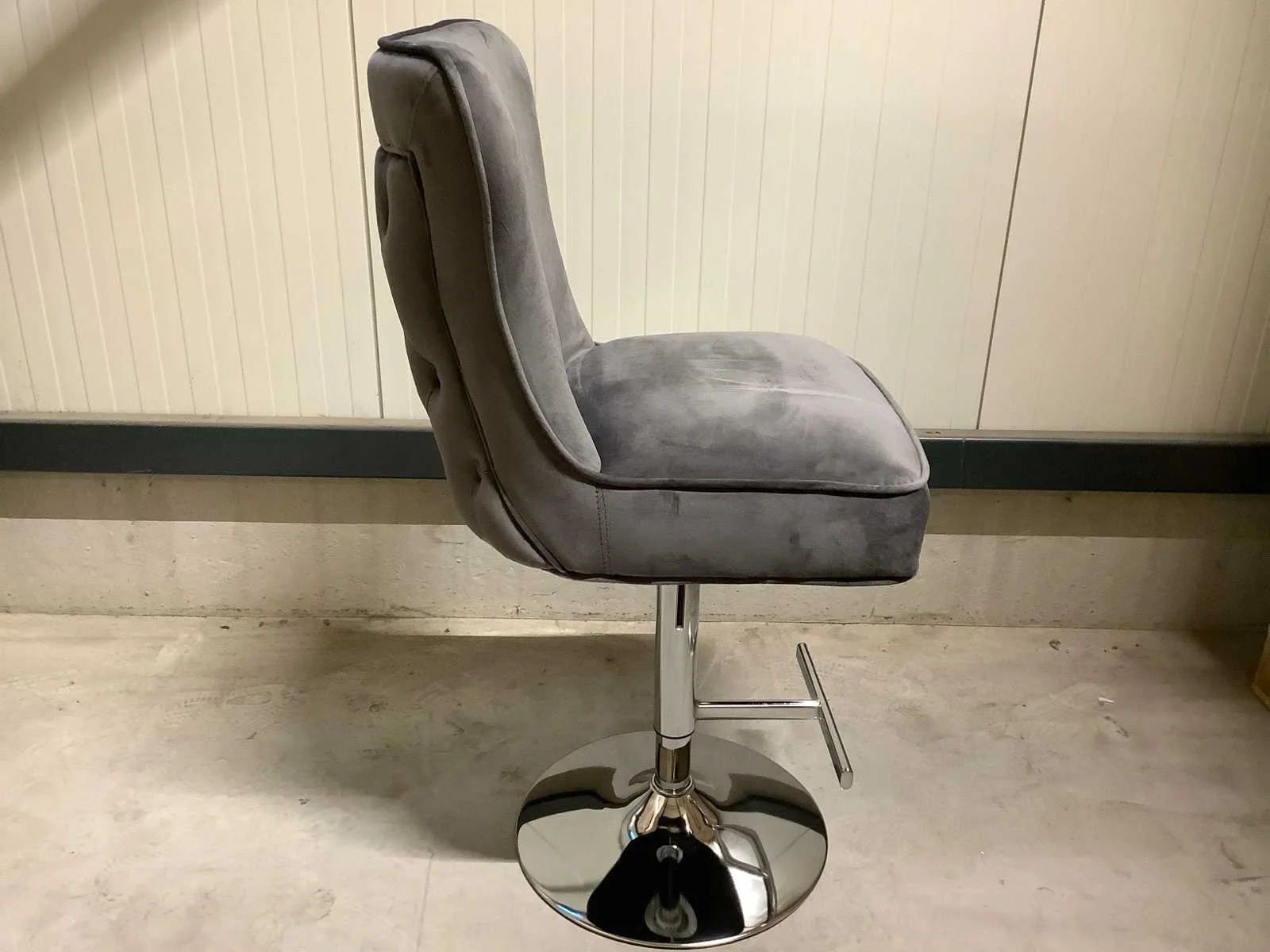 Dit betreft een product nieuw in doos. Let op: in hoogte verstelbaar. Bezorgtermijn 14 dagen Merk: Great Home Kleur: Grijs ( Chrome legs ) Lengte: 52cm Breedte: 61cm Hoogte: 110122cm Materiaal: Metaal / Stof