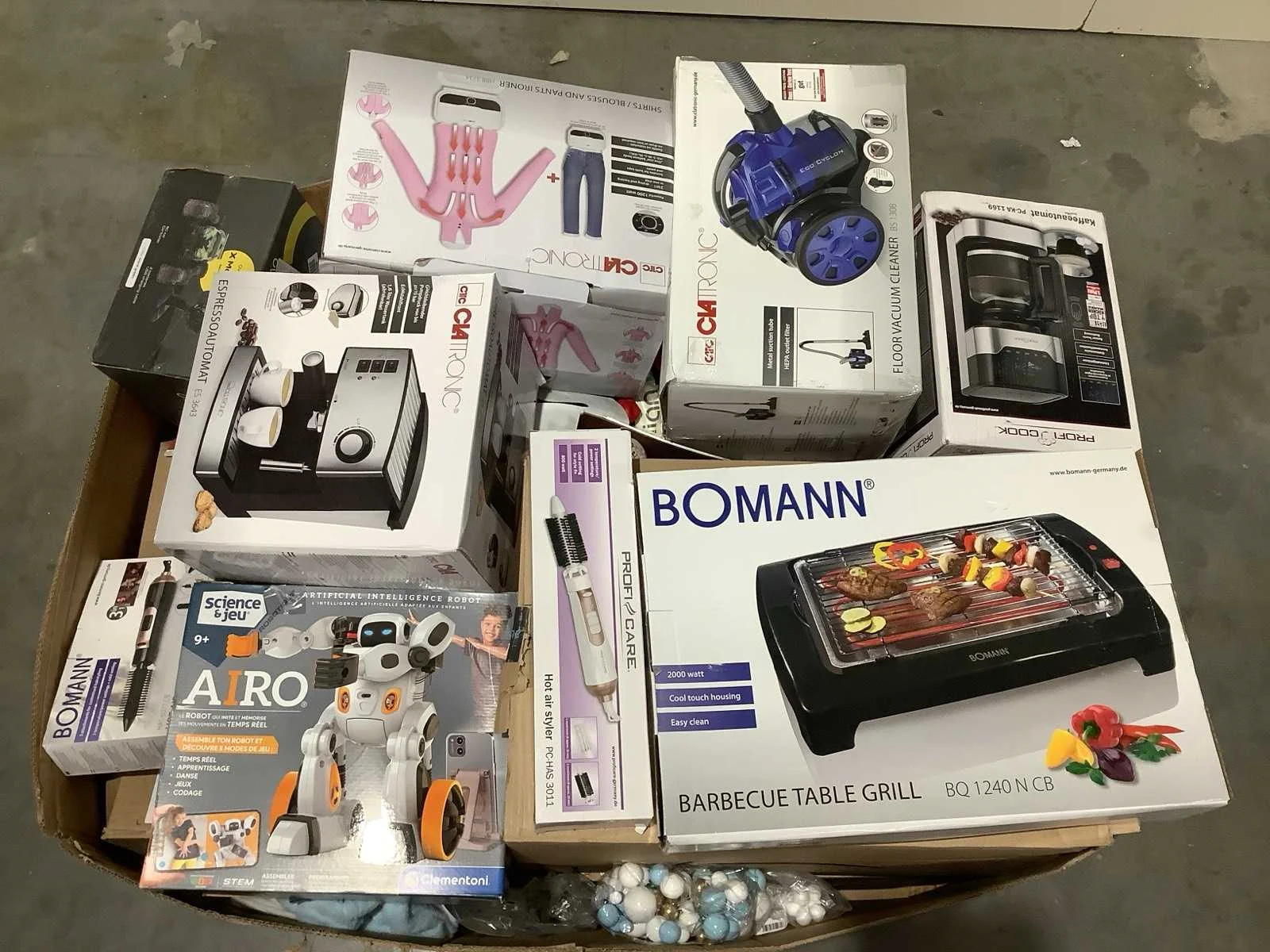 Dit betreft een partij retourgoederen van een grote online retailer. Ongecontroleerd: werking onbekend (mix van werkend, incompleet, beschadigd, te gebruiken voor onderdelen). Kom op de kijkdag om te om zo een goed beeld te krijgen van de reden van retour. Bezorgtermijn 7 dagen Gewicht: 128kg Lengte: 80cm Breedte: 120cm Hoogte: 95cm