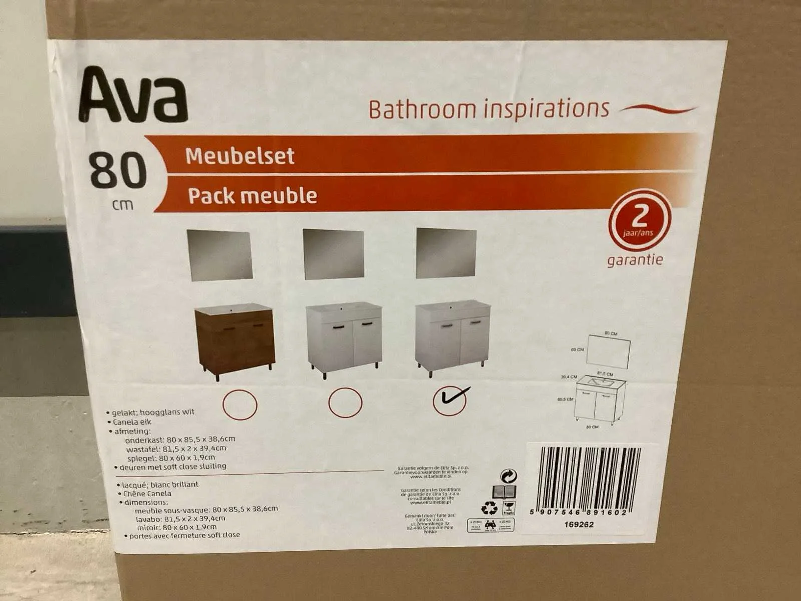 Let op : Dit betreft een artikel nieuw in verpakking doos kan schade bevatten. Merk: Ava Model: 2 deuren Kleur: Wit en Chroom Breedte: 80cm
