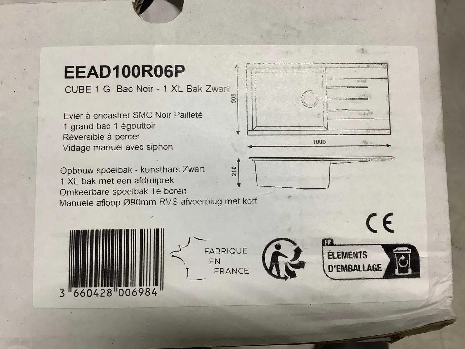 Cube 100x50x21cm spoelbak