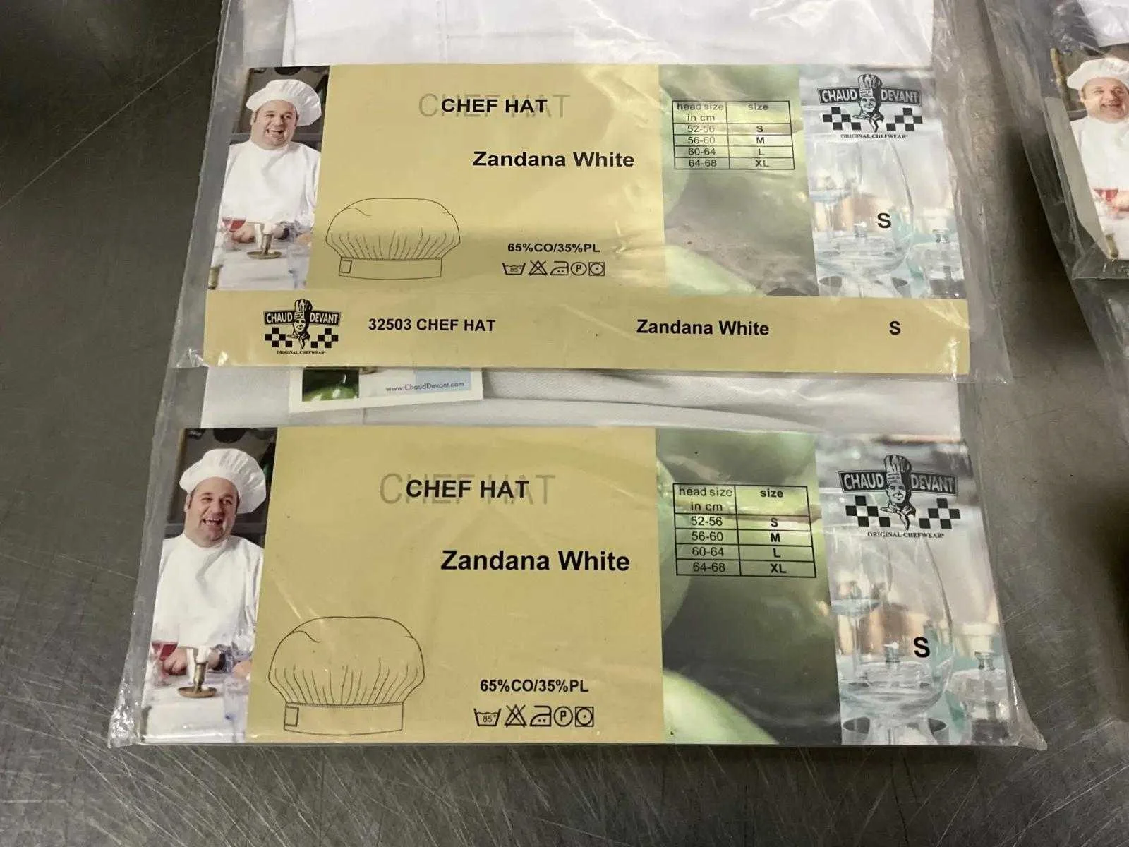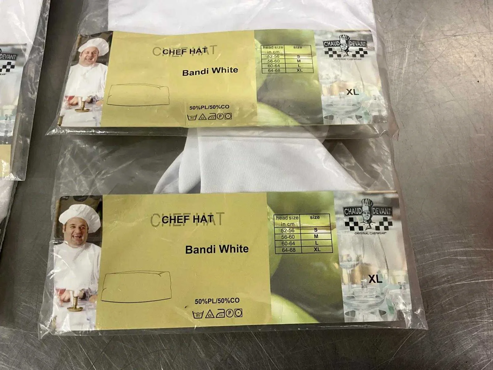 Let op! 2x Zandana white "S" en 2x Bandi White "XL". Merk: Chaud Devant Model: Chef Hat