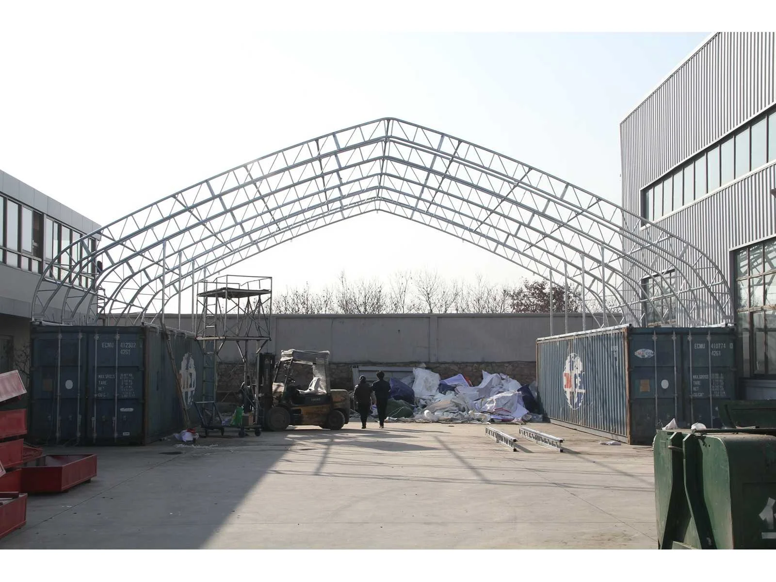 Field containeroverkapping / opslagshelter tussen 2x 40ft container 24,00 x 15,25 x 4,72 meter / c50-80sp
