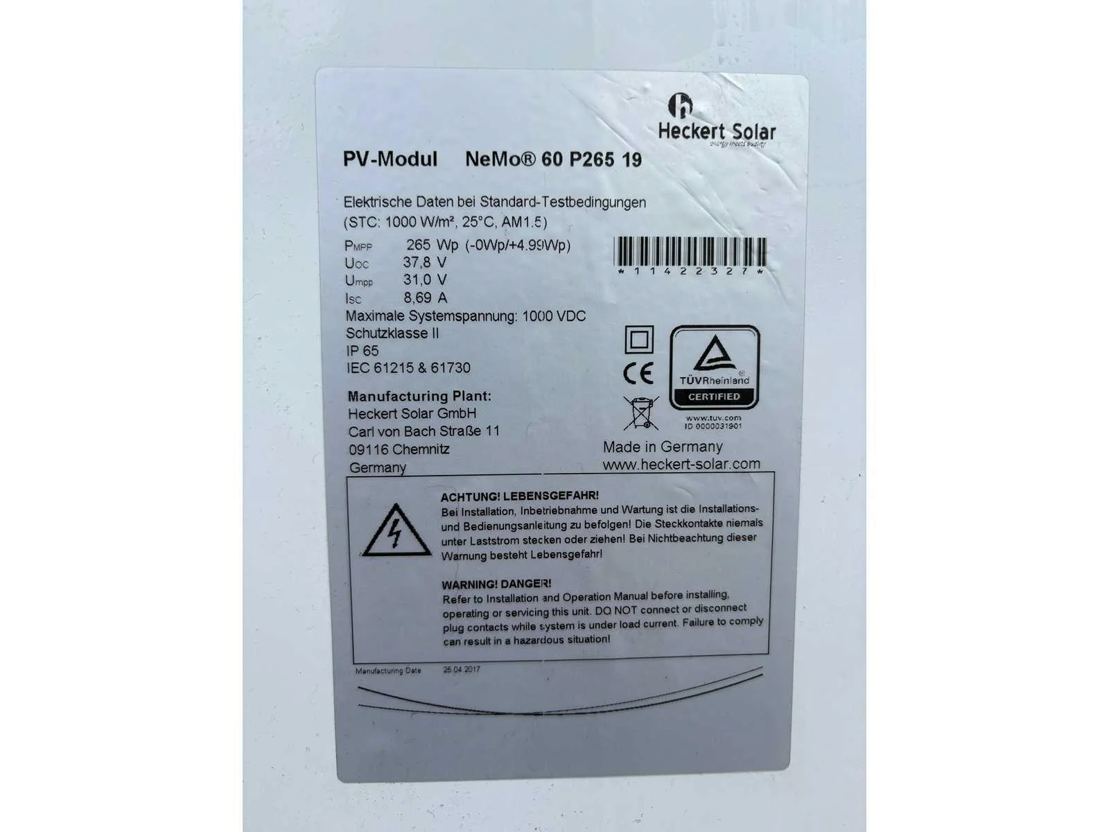 Heckert solar - nemo 60 p265 19 - gebruikt zonnepaneel (100x)