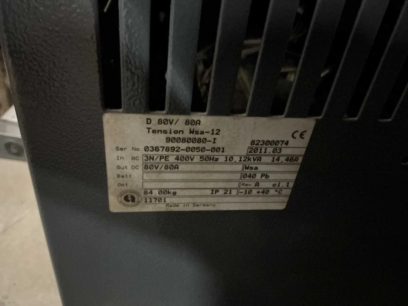 Merk: EnerSys Type: 80V 80A Bouwjaar: 2011 Spanning: 80V Laadstroom: 80A