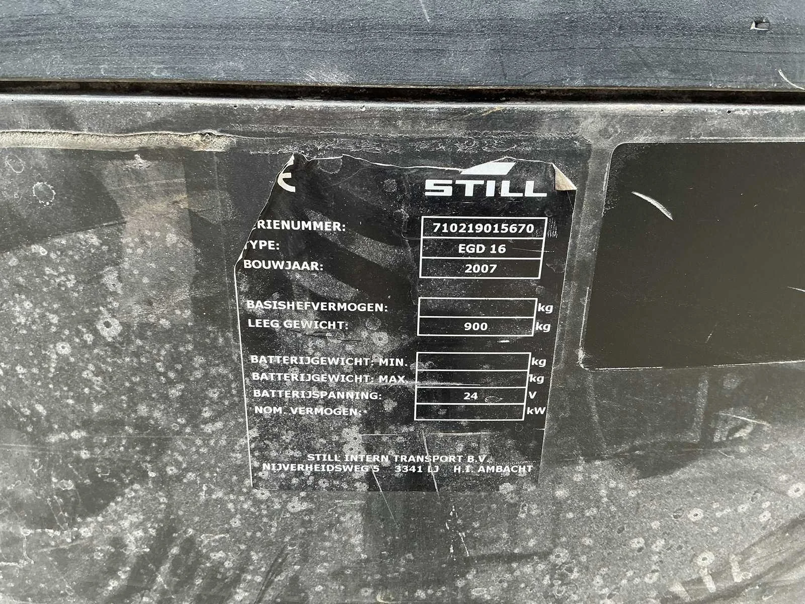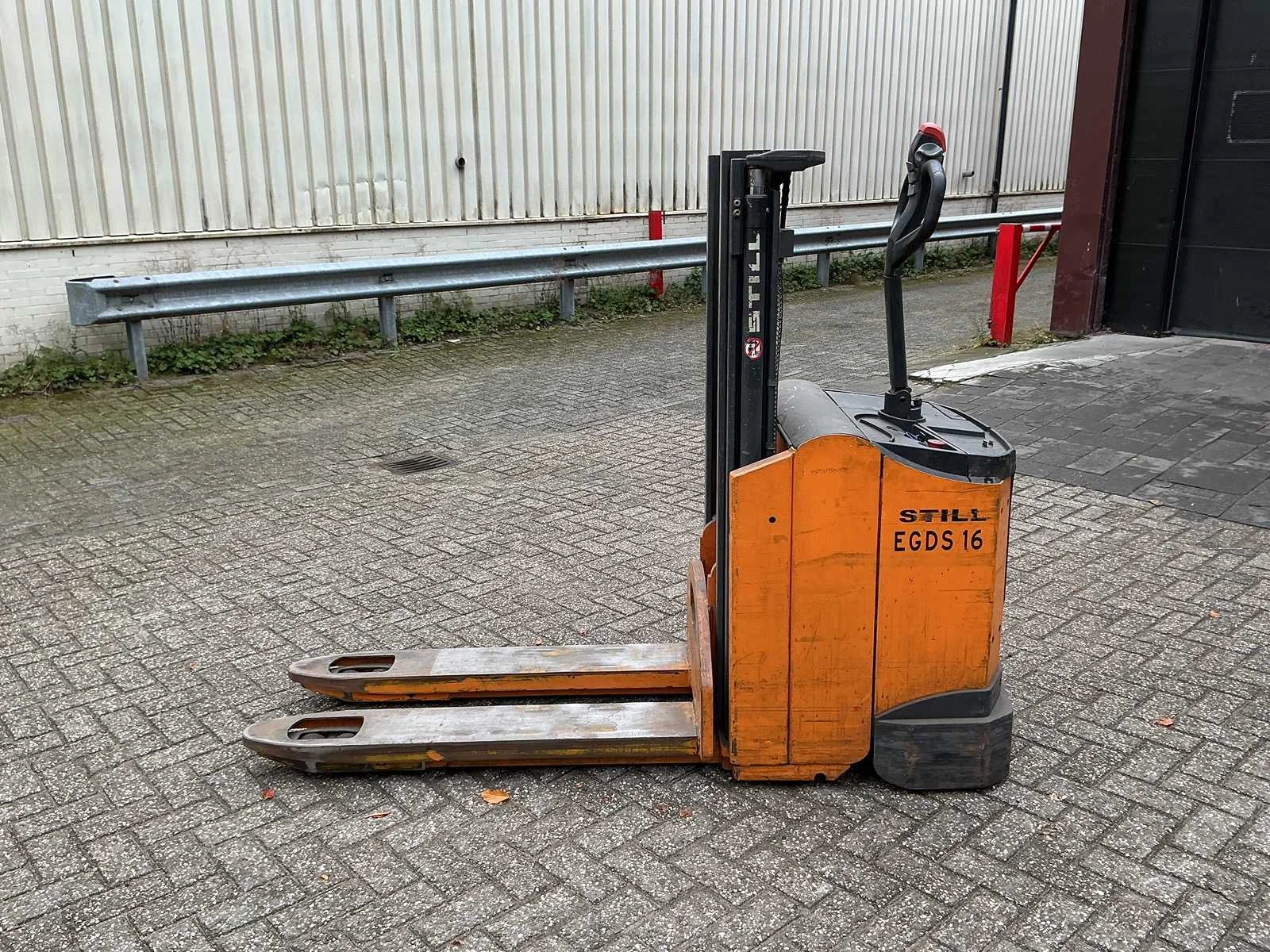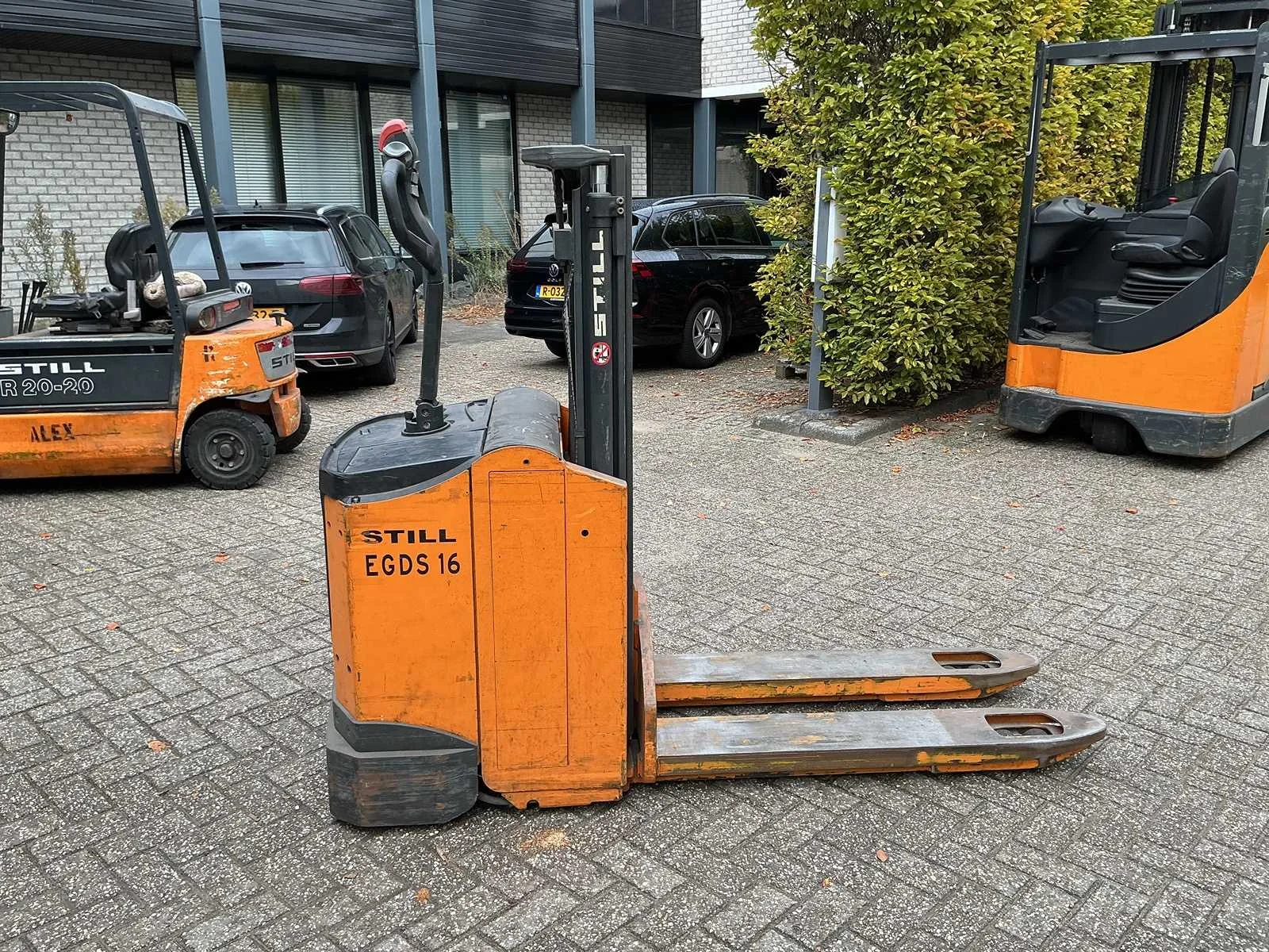 Merk: STILL Type: EGDS 16 Bouwjaar: 2007 Serienummer: 710219015670 Hefvermogen: 16kg Hefhoogte: 2140mm Lepellengte: 1190mm Afgelezen urenstand: 3036 Minimale doorrijhoogte: 1545mm