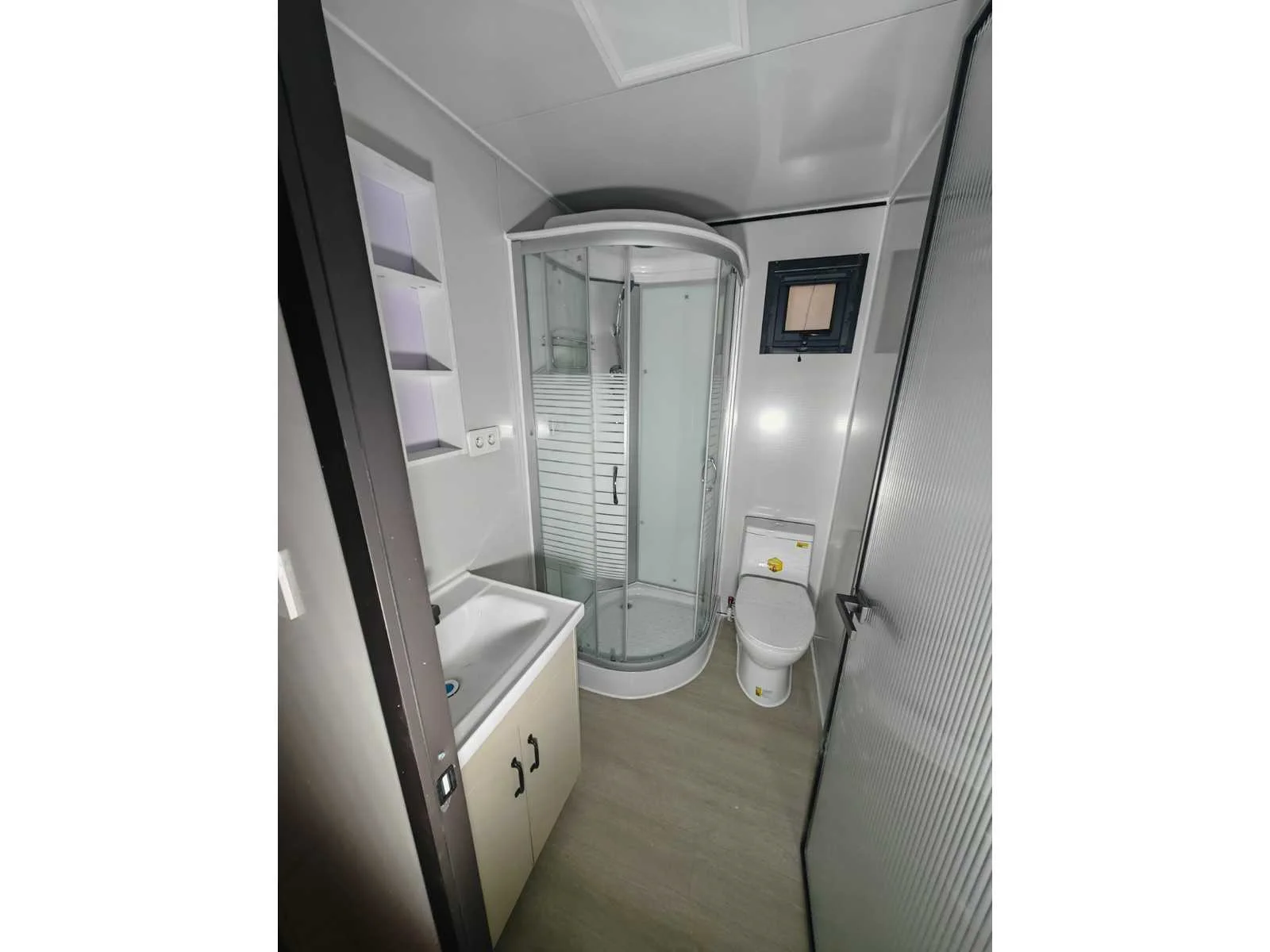 LET OP afhalen vanaf 30 juli; Voorzien van geïsoleerde wanden en dak; 2 slaapkamers; leefruimte met hoekkeuken; badkamer met douche, wc en wastafel; elke ruimte voorzien van verlichting en stopcontacten 230V; meterkast; PVC vloer; aluminium ramen en deuren; afsluitbaar; water, stroom en afvoer kan makkelijk aangesloten worden is voorbereid; ongebruikt en staat transport klaar (transport afmetingen 590x220x248 cm, gewicht 3100 kg) LET OP afhalen vanaf 30 juli Merk: Rhino-Houses Model: 36,5 m2 Bruin Product type: 2 slaapkamers, badkamer en keuken Kleur: Bruin Gewicht: 3100 Lengte: 5900 Breedte: 6200 Hoogte: 2480