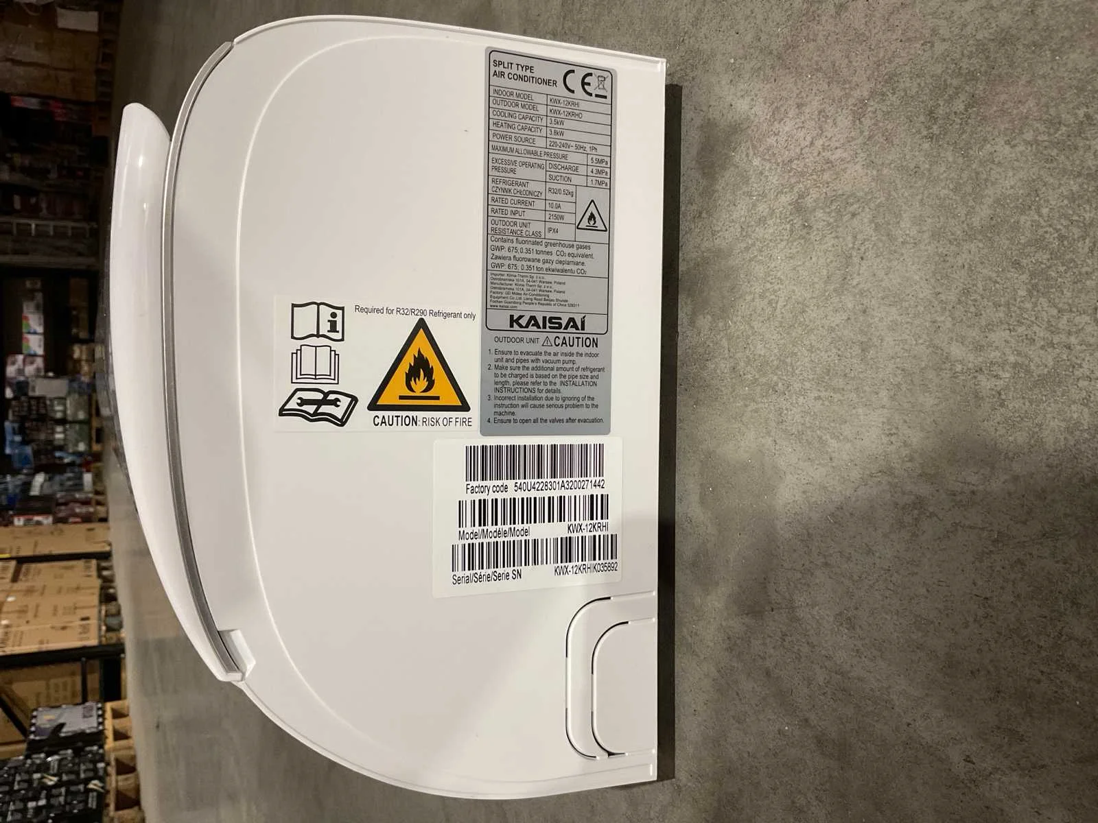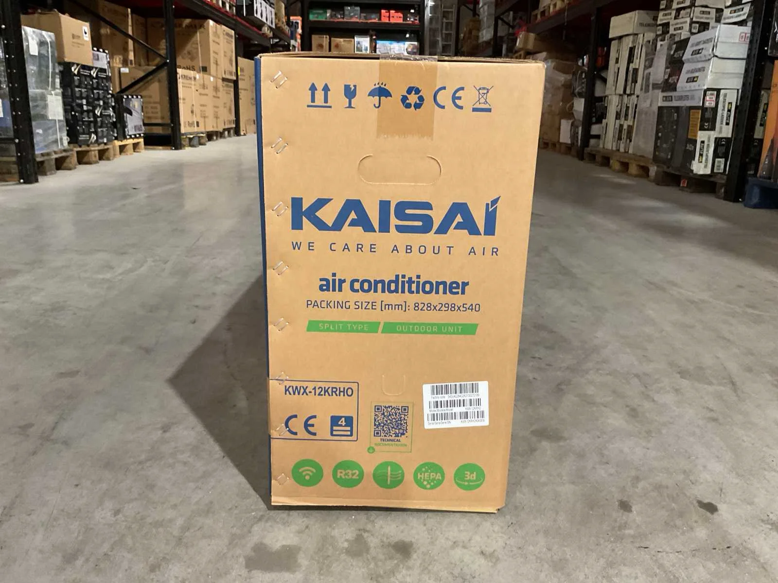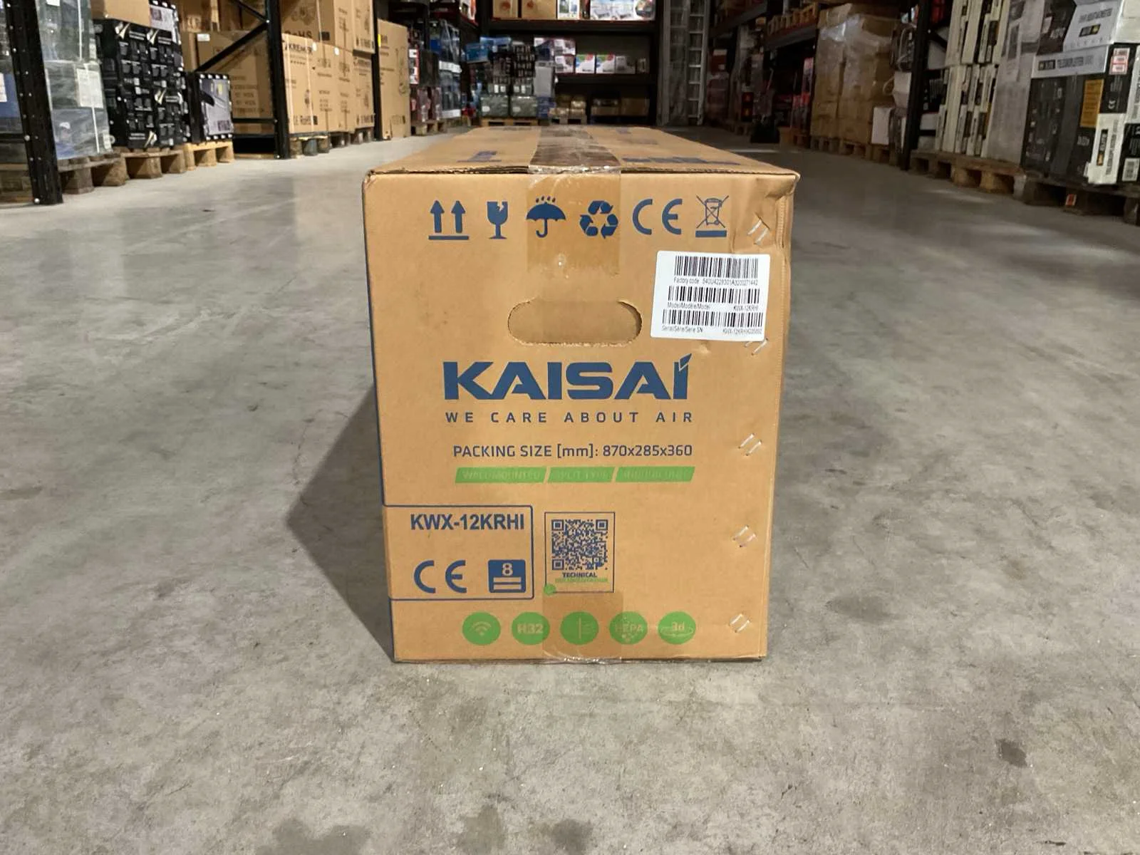 Voorzien van compressor, condensbakverwarmers en een WiFi-module; Type interne eenheid: KWX-12KRHI; Type externe eenheid KWX-12KRHO; Koelrendement [kW] 3,5; Verwarmingsrendement [kW] 3,8; Energieklasse koelen/verwarmen [W] A++/A+; Vermogen [V] 220-240; Gemiddeld stroomverbruik koelen/verwarmen [W] 1237/940; ERR-energieverhouding [W/W] -; COP-energieverhouding [W/W] -; SEER-energieverhouding koeling [W/W] 6,1; SCOP-energieverhouding verwarming [W/W] 4,0; Geluidsniveau max/min [dB(A)] interne eenheid 40/34; Geluidsniveau max/min [dB(A)] externe unit 56; Koelmiddel R32; Buisdiameter vloeistof/gas [mm] 6,53/9,52; Maximale koelinstallatielengte zonder koelmiddel bij te vullen [m] 25; Maximaal niveauverschil in binnen- en buitenunit [m] 10; Afmetingen binnenunit (hxbxd) [mm] 805x285x194; Afmetingen buitenunit (hxbxd) [mm] 700x550x275; Toegestane externe temperatuurbereik koeling [°C] -15~50; Toegestane externe temperatuurbereik verwarming [°C] -15~30; Ongebruikt in doos Transport afmetingen (KWX-12KRHO 23,2KG 828x298x540mm) - (KWX-12KRHI 9,9kg 870x285x360mm) Merk: Kaisai Type: KWX-12KRHO / KWX-12KRHI Bouwjaar: 2025 Koelcapaciteit (W): 3500 Verwarmingscapaciteit: 3.8 kW Type koudemiddel: R32 Aansluiting: 220V