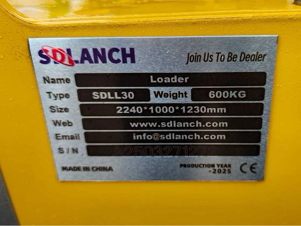 Voorzien van; 420cc Benzine motor; Dichte bak 900mm; verlichting; extra hydraulische functie Merk: SDLANCH Type: SDLL30 Bouwjaar: 2025 Motorvermogen (kW): 15kW Aantal cilinders: 1 Brandstof: Benzine Eigen gewicht: 600kg Totale afmeting L: 2240mm Totale afmeting Breedte: 1000mm Totale afmeting Hoogte: 1230mm