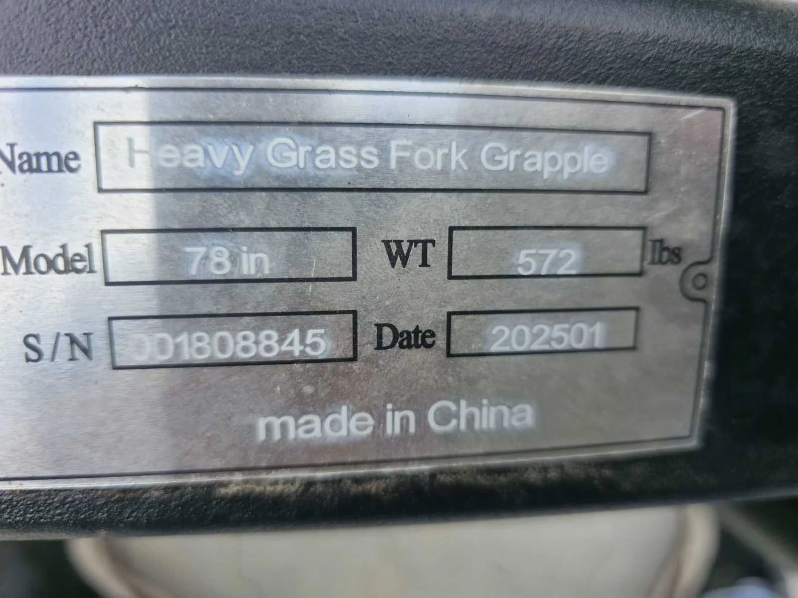 Voorzien van schranklader/“bobcat” opname-/aanbouwplaat; 16 Mpa; werkbreedte 198 cm; geleverd in stalen krat; ongebruikt Merk: Rhino-Cross Type: 78 inch heavy duty fork grapple Bouwjaar: 2025 Eigen gewicht: 327kg Totale afmeting L: 2210mm Totale afmeting Breedte: 762mm Totale afmeting Hoogte: 819mm