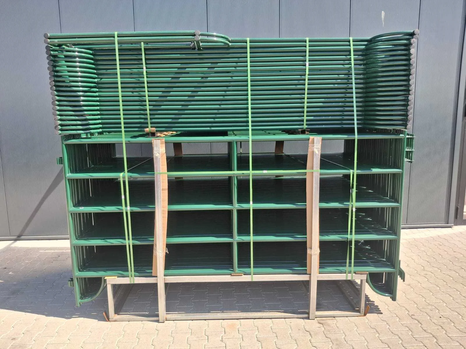Voorzien van 54 hekken; afmeting hekken 305 cm breed 152,5 cm hoog; 2 hekken met poorten; ongebruikt Merk: Rhino-Cross Product type: 170 m Kleur: Groen