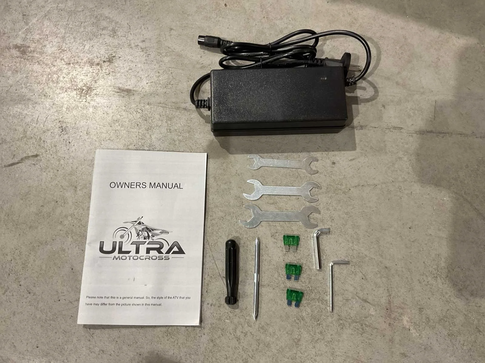 Voorzien van Krachtige 1000W motor; 36V accu; Snelheidsregelaar met 2 standen (10, 25 km/h); Achteruitschakelaar; Verlichting; Schijfremmen voor & achter; Ongebruikt Merk: Ultra Motocross Model: MA05E RZ Product type: 1000W Kleur: Grijs/Roze