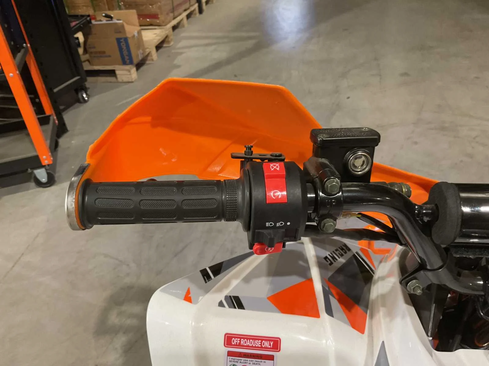Voorzien van elektrische start; 4 takt; 125 cc; hydraulische schijfremmen; bandenmaat 8” inch; 2 sleutels; ongebruikt in krat (transport afmetingen 135x85x65 cm 118kg) Merk: Ultra Motocross Model: ATV008 Product type: ATX 125 OR Gewicht: 109kg Transmissie: Semi automaat Bouwjaar: 2025 Vermogen (pk): 9hp Cilinderinhoud: 125cc Kleur: Oranje