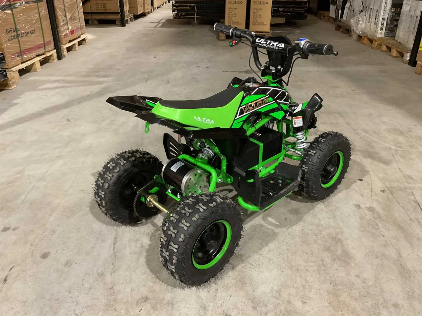 Voorzien van 1000W 36V elektrische motor; ouderen sleutel 3 verschillende snelheden; achterwielaandrijving; bandenmaat 6” inch; 2 sleutels; ongebruikt in doos (transport afmetingen 100x55x45 cm) Merk: Ultra Motocross Model: MA03E Product type: ATX 1000 GR Gewicht: 45kg Aantal sleutels: 2 Transmissie: Automaat Bouwjaar: 2025 Vermogen (kW): 1kW Brandstof: Elektrisch Kleur: Groen