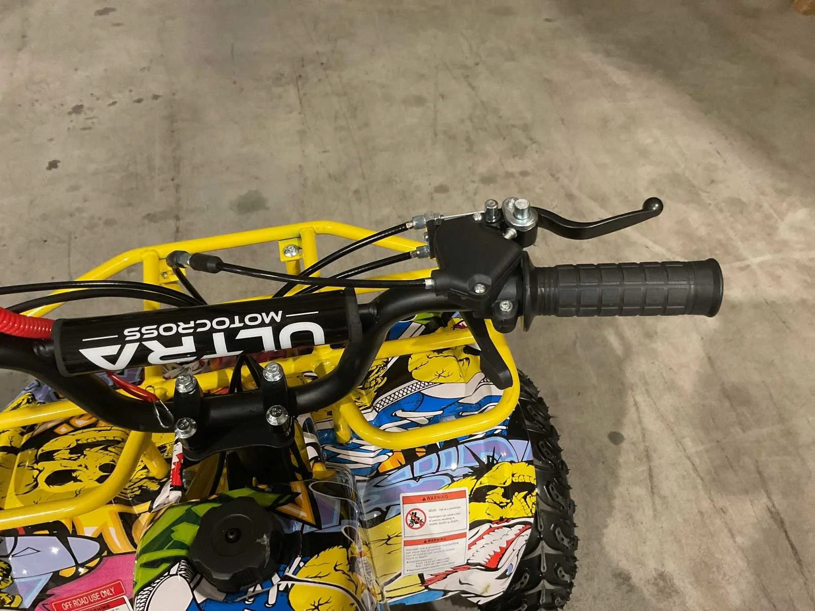 Voorzien van 49cc benzine motor; 2 takt; trek start; 3 verschillende snelheden; kill-switch; bandenmaat 6” inch; 2 sleutels; ongebruikt in doos (transport afmetingen 100x60x55 cm 42kg) Merk: Ultra Motocross Model: MA06 Met rekje Product type: ATX 49 BL/GE Gewicht: 39kg Aantal sleutels: 2 Transmissie: Automaat Bouwjaar: 2025 Cilinderinhoud: 49cc Brandstof: Benzine 2 Takt Kleur: Blauw/Geel