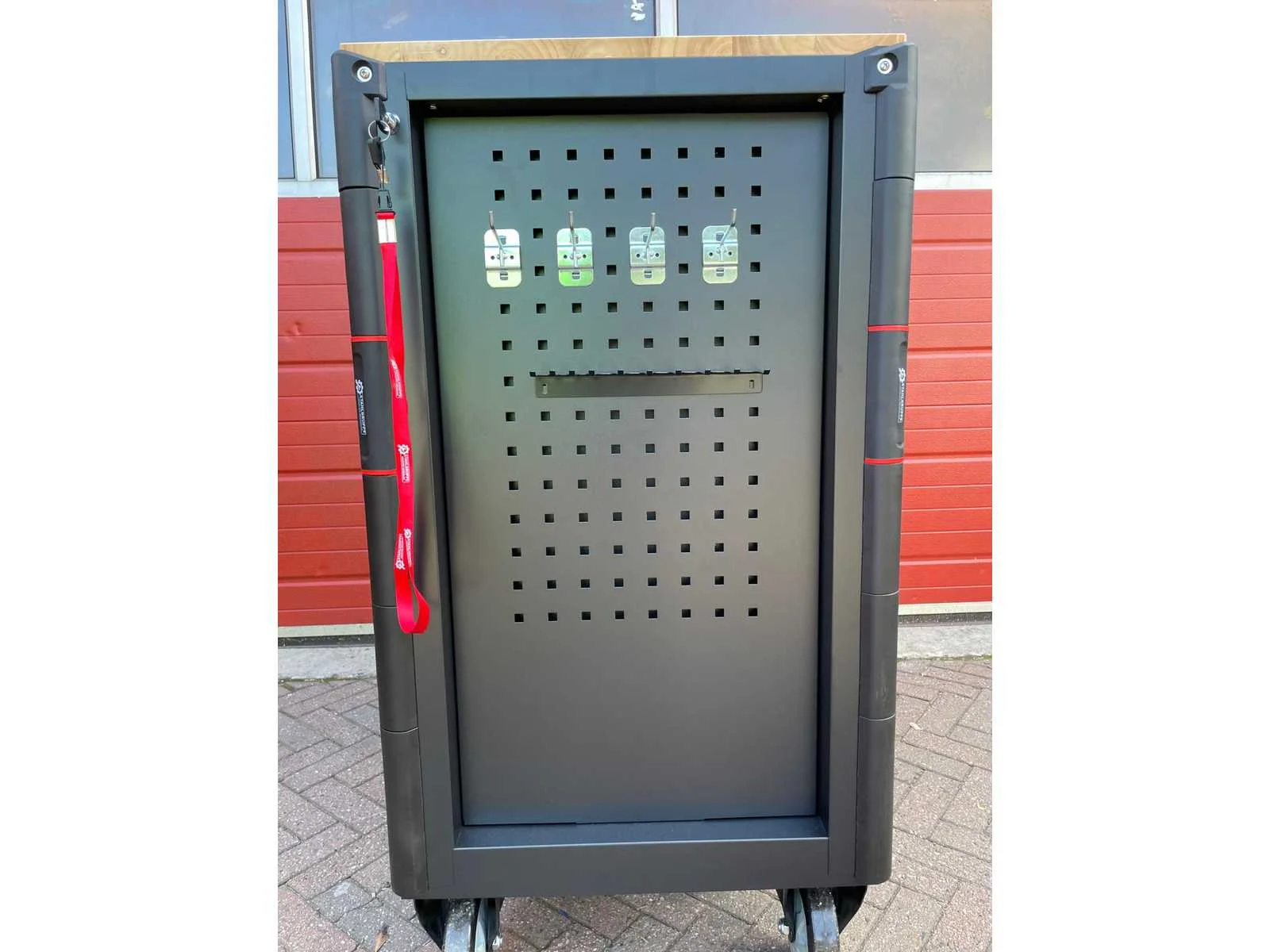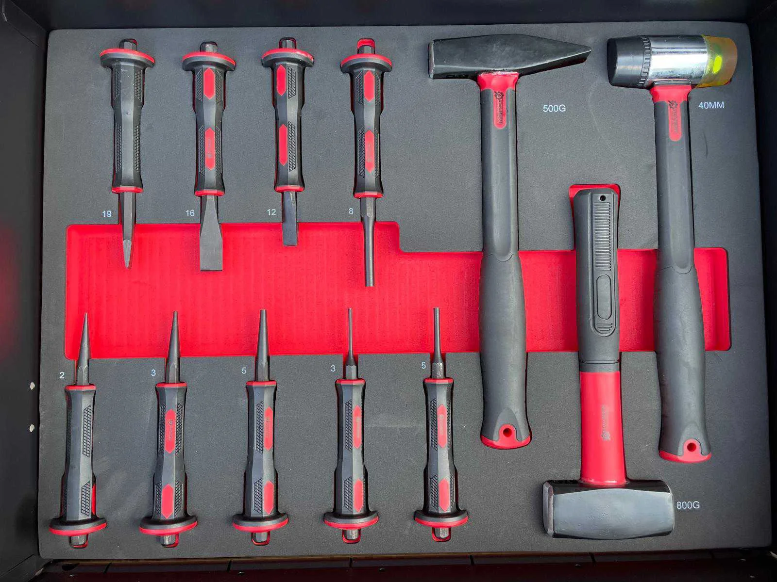 Gevulde gereedschapswagen; aantal gevulde laden: 11 gevulde laden; gereedschap: chrome vanadium; inhoud: 2 dopsleutel sets, momentsleutel, ringsteeksleutel set 6-32, ringratelsleutel 8-19, inbussleutel set, ringsleutel set 6-32, torx sleutel set T8-T70, schroevendraaier set (21 stuks), tangen set (9 stuks), beitel en doorslagen set (18 stuks), vijlen set (5 stuks), T-greep dopsleutel set 6-14, T-greep torx sleuel set T15-T45, hamers (3 stuks), VDE gereedschap (3 tangen en 7 schroevendraaiers), kabelschoentang set, enzovoort; staat: ongebruikt in doos Merk: Stahlgruppe Type: Jumbo R Bouwjaar: 2024 Aantal laden: 13 Met inhoud: true Eigen gewicht: 138kg Totale afmeting L: 1100mm Totale afmeting Breedte: 620mm Totale afmeting Hoogte: 1120mm