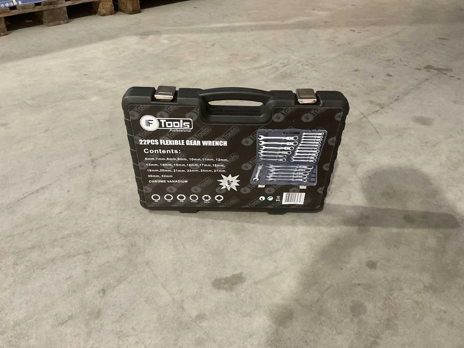 Voorzien van Steek/Ratelringsleutel maten: 6, 7, 8, 9, 10, 11, 12, 13, 14, 15, 16, 17, 18, 19, 20, 21, 22, 23, 24, 27, 30, 32mm; Kunstof koffer; Ongebruikt (Transport Afmeting 500 x 70 x 360mm, Gewicht: 8,84 kg) Merk: F Tools Professional Set: true Delig: 22 Bouwjaar: 2025 Type: 22PCS Flexible Gear Wrench
