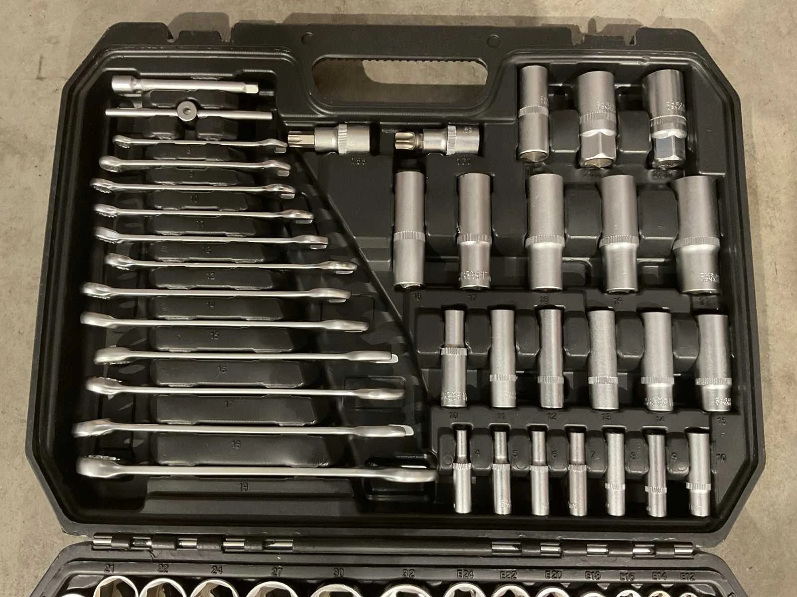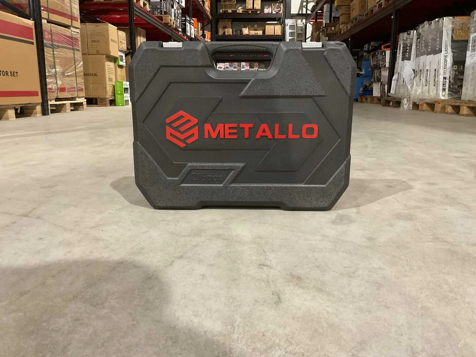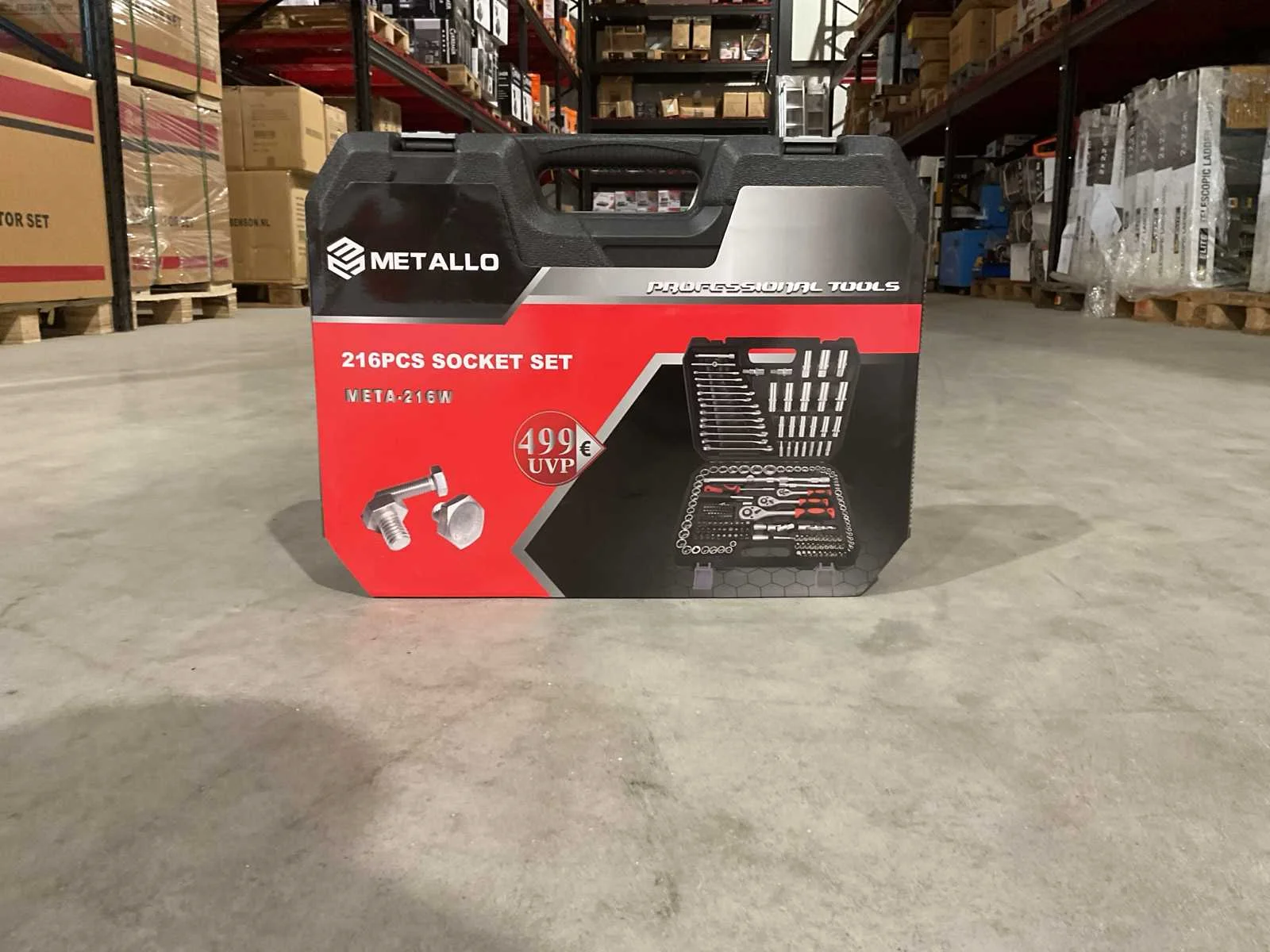Voorzien van 13 x 1/4'' doppen: 4-14mm; 10 x 3/8'' doppen: 10-19mm; 15 x 1/2'' doppen: 10-32mm; 5 x 1/4'' torx-doppen: E4, E5, E6, E7, E8; 3 x 1/2'' torx-doppen: E20, E22, E24; 6 x 3/8'' torx-doppen: E10, E11, E12, E14, E16, E18; 30 x 1/4'' dop bits: HEX: H3, H4, H5, H6 SLOTTED: SL4, SL5.5, SL6.5, SL7 PHILLIPS: PH0, PH1, PH2 POZIDRIV: PZ0, PZ1, PZ2 TAMPER STAR (TORX): TT8, TT9, TT10, TT15, TT20, TT25, TT27, TT30 STAR (TORX): T8, T9, T10, T15, T20, T25, T27, T30;; 30 stuks ½ bits: (2 stuks ½ dopsleutelbits: T50, T70): INBUS: H5.5, H6, H6.5, H7, H8, H10, H12 SLOTTED: SL6, SL6.5, SL8 PHILLIPS: PH3, PH4 POZIDRIV: PZ3, PZ4 SPLINE: M5, M6, M8, M10 TAMPER STAR: TT27, TT30; TT35, TT40, TT45, TT50 STAR: T27, T30; T35, T40, T45, T50; 30 x ½ bits: (2 stuks ½ dop bits: T50, T70): INBUS: H5.5, H6, H6.5, H7, H8, H10, H12 SLOTTED: SL6, SL6.5, SL8 PHILLIPS: PH3, PH4 POZIDRIV: PZ3, PZ4 SPLINE: M5, M6, M8, M10 TAMPER STAR: TT27, TT30; TT35, TT40, TT45, TT50 STAR: T27, T30; T35, T40, T45, T50; 44 stuks bit set ½: M: 5, 6, 8 PH: 0, 1, 2, 3 PZ: 0, 1, 2, 3 SL: 4, 5.5, 6.5, 7 TT: 8, 10, 15, 20, 25, 27, 30, 40, 45 TO: 6, 8, 10 HX: 2; 2.5; 3, 4, 5, 6, 7 SP: 4, 6, 8, 10 TW: 1, 2, 3, 4.; 2 x 1/2'' dopbits: T55, T60; 7 x 1/4'' lange dop: 4-10mm; 6 x 3/8'' lange dop: 10-15mm; 5 x 1/2'' lange dop: 16-22 mm; 1 x kniestuk 1/4''; 1 x kniestuk 3/8''; 1 x kniestuk 1/2''; 2 x 1/4'' verlengstuk: 2'', 4''; 1 x 3/8'' verlengstuk: 5''; 2 x 1/2'' verlengstuk: 5'' en 10'' 1 x 1/2'' 3-weg adapter; 2 x bougie doppen 1/2'': 16mm en 21mm; 1 x ratel 1/4'' aansluiting; 1 x ratel 3/8'' aansluiting; 1 x ratel 1/2'' aansluiting; 12 x steeksleutels: 8-19mm; 7 x inbussleutels: 1.27, 1.5, 2, 2.5, 3, 4, 5mm; 1 x bitschroevendraaier; 1 x 3/8'' aansluiting bougiedop: 18mm; 1 x wringijzer 1/4'' aansluiting; 1 x 1/4'' aansluiting bit houder; 1 x 3/8'' aansluiting bit houder; 1 x spinner handvat 1/4'' aansluiting; 1 x plastic koffer; Ongebruikt in doos (Transport afmeting 460 x 90 x 350, Gewicht 10.44 KG) Merk: Metallo Met koffer: true Delig: 216 Type: META-216W Bouwjaar: 2025
