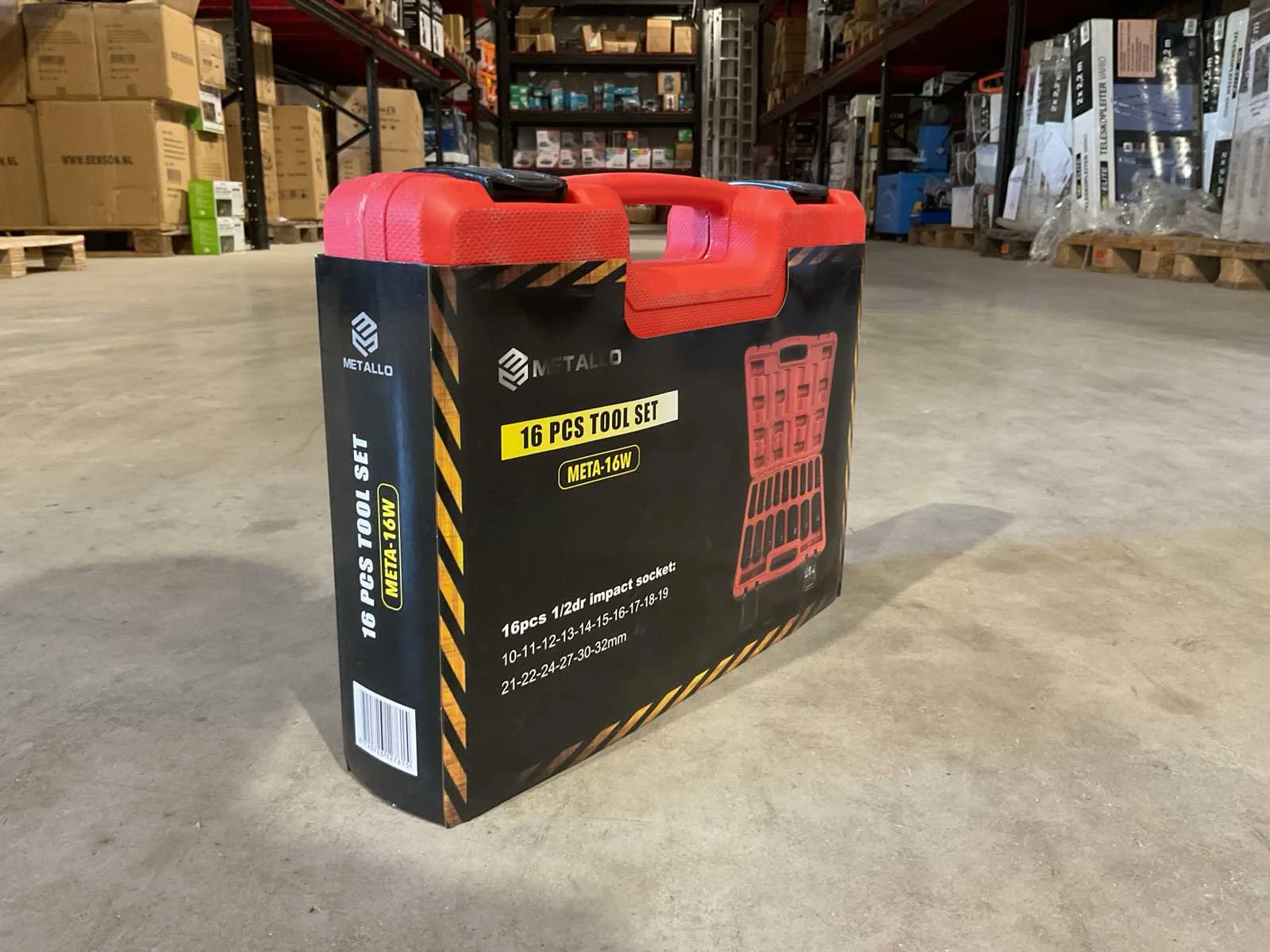 Voorzien van kunststof opbergkoffer; 16-delig; Maten: 10-11-12-13-14-15-16-17-18-19-21-22-24-27-30-32 mm; Ongebruikt in verpakking (Transport Afmetingen 350 x 75 x 270, Gewicht 44 kg ) Merk: Metallo Met koffer: true Delig: 16 Krachtdop uitvoering: true Type: META-16W Bouwjaar: 2025