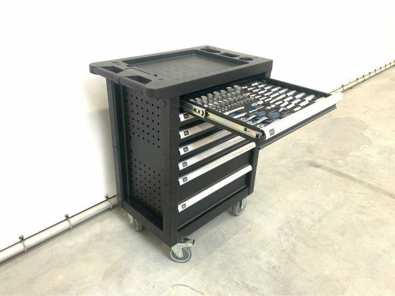 250-delig v.v. 2 zwenkwielen; ongebruikt in doos; 2238; Aantal laden: 7 Met inhoud: true Totale afmeting L: 770mm Totale afmeting Breedte: 460mm Totale afmeting Hoogte: 980mm