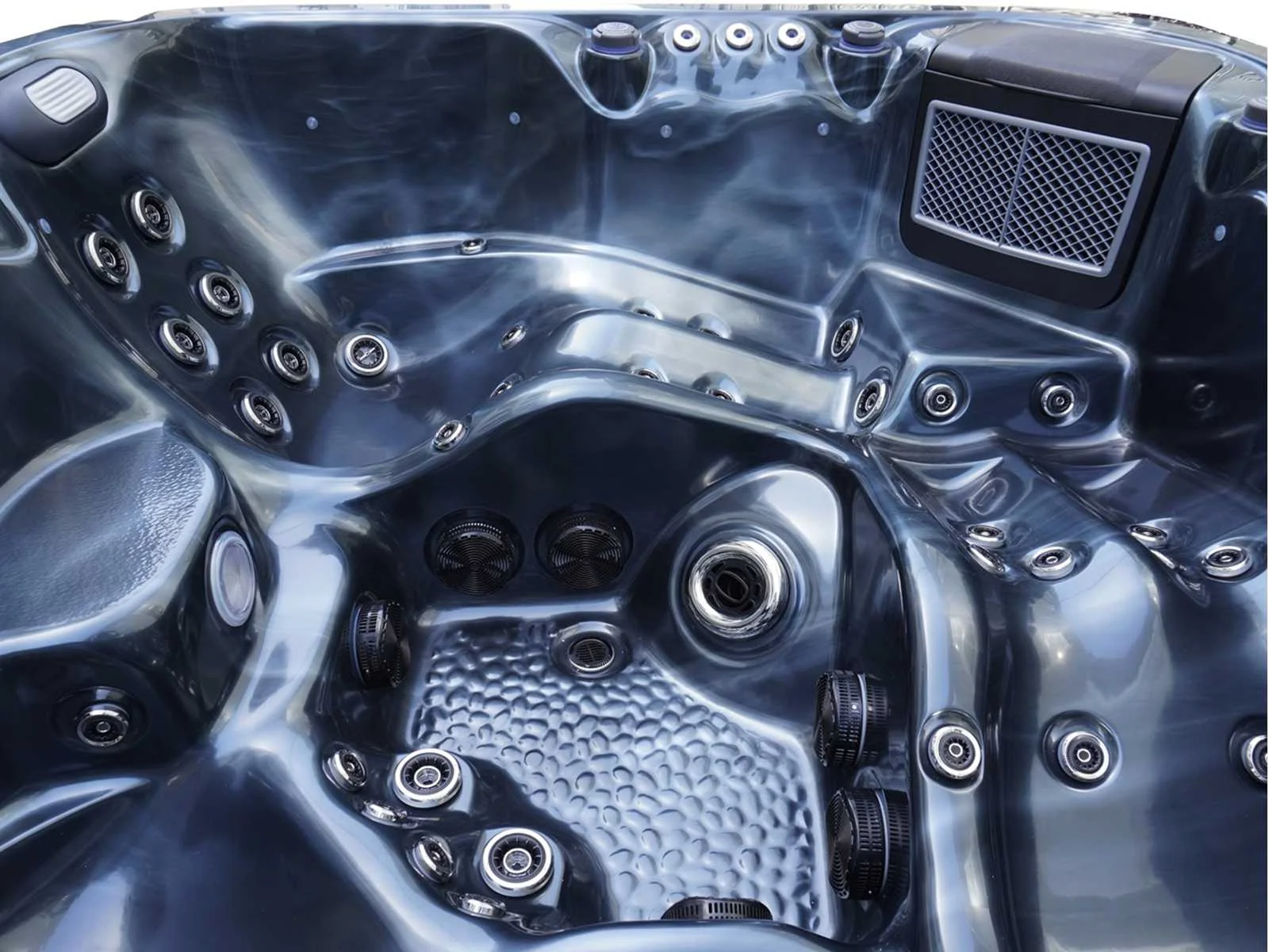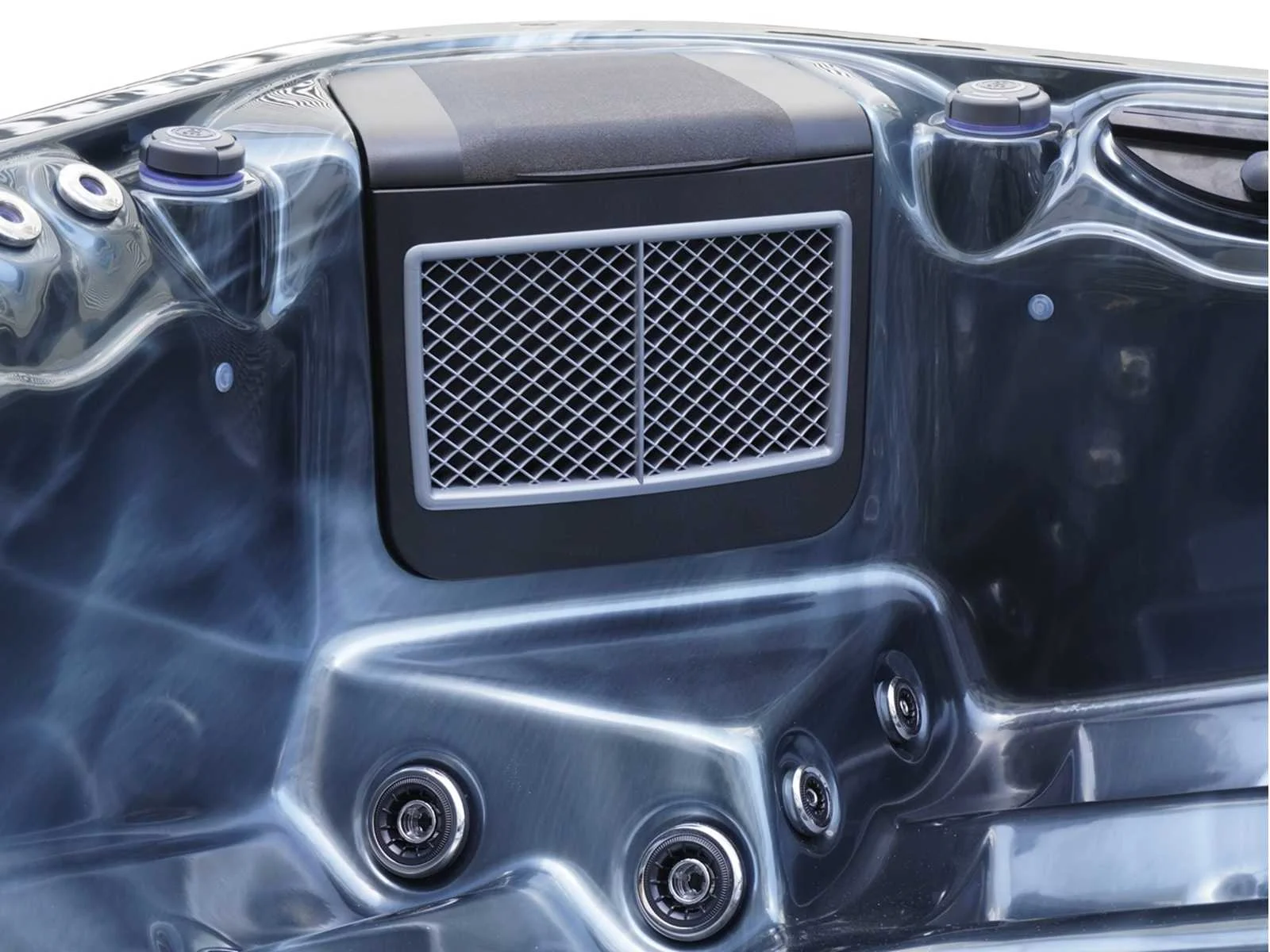 Bluetooth met 2 popup speakers, kunststof onderhoudsvrije ombouw, besturing balboa (Balboa BP6013+TP600 Balboa heater (3000 watt), 2 massage pompen (3pk per stuk), 24h circulatiepomp (370watt), 2 liglaatsen en 3 zitplaatsen (3 plaatsen voorzien van hoofdkussen), afdek cover inclusief, totaal 54 stainless steel RVS jets, extra nek en voet massage jets, vorst beveiliging, ozone desinfectie systeem, diverse leds verlichting langs de waterrand, 3 fontein jets, waterval, diverse regelknoppen om de de kracht en de verdeling naar de jets te regelen, oppervlakte en reinigingsfilter, kuip extra dikke foam isolatie + extra isolatie aan de buitenwanden, waterafvoer, inclusief trapje, deze spa zit vol met alle mogelijk bestelbare opties, dit betreft een nieuw product in verpakking. Merk: Mawialux Vermogen: 7875W Spanning: 220-380V Filters: 2 Verlichting: diverse leds met kleurentherapie (7 kleuren) op waterniveau Inhoud: 1500l Pompen: 3 Jets: 54 Aantal personen: 5 Kleur: T10 Silver white marble (wit) of cloud dark (zwart) met donker grijze ombouw Gewicht: 400kg Lengte: 220cm Breedte: 220cm Hoogte: 94cm Materiaal: USA Lucite acryl + Aluminium frame + kunststof ombouw + PVC gesloten bodem