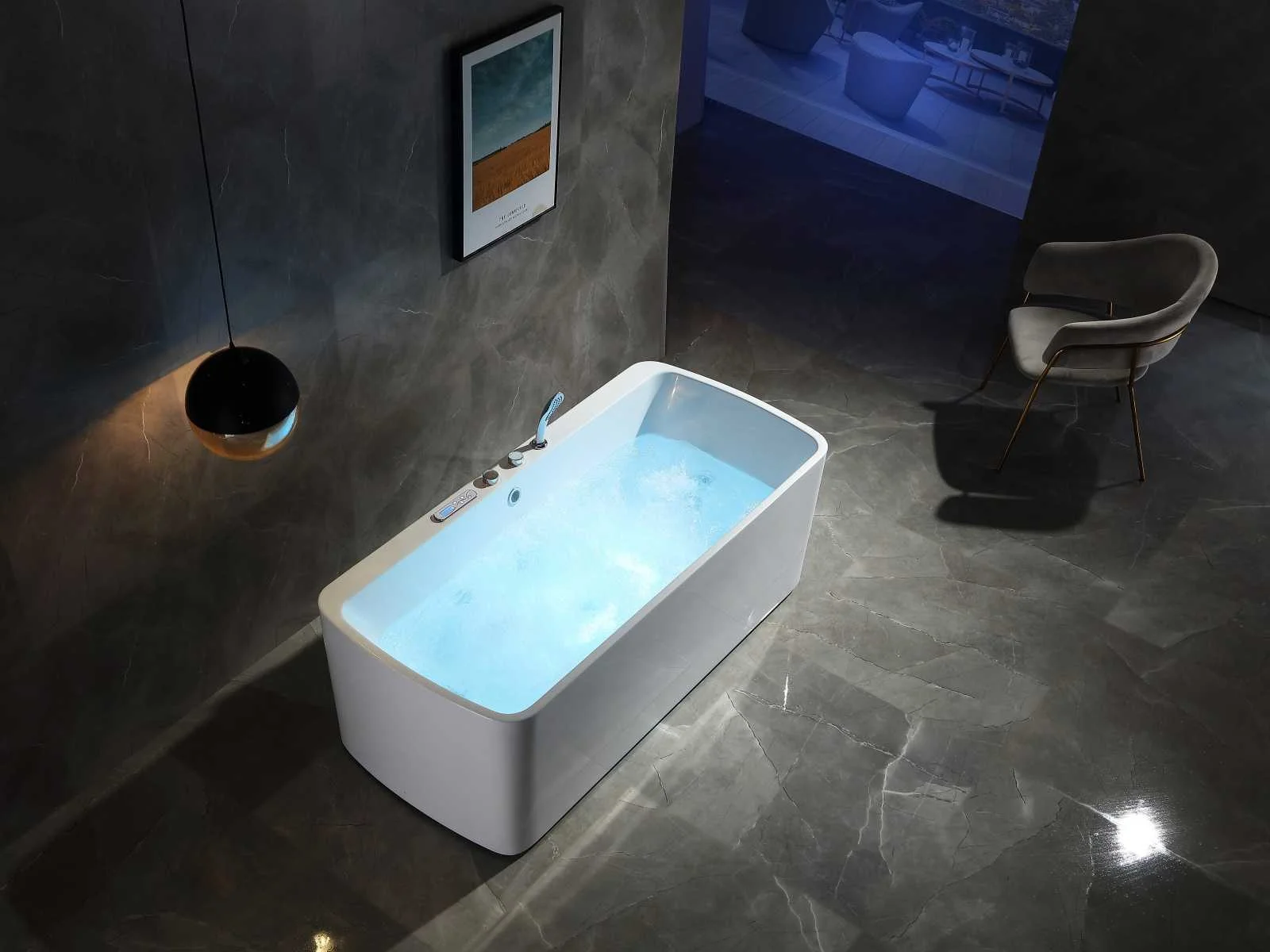 Afvoer pop-up met flexibele waterslang, verwarming 2000 watt, met plug and play 220v stekker, massagepompen 1x 1 pk hydropomp en 1 luchtpomp (sterkte regelbaar), massagejets hydro massagejets en diverse luchtjets, speakers met bluetooth, watertemperatuur regelbaar, digitaal bedieningspaneel, droogloop en waterniveau beveiliging, handdouche met kraanwerk, sterkte van jets regelbaar, chroom kraanwerk van messing, onderstel verstelbaar en van rvs Merk: Mawialux Model: Blanco Kleur: glans wit Gewicht: 75kg Lengte: 170cm Breedte: 79cm Hoogte: 64cm Materiaal: 7 mm acryl verstevigd met polyester en messing kraanwerk