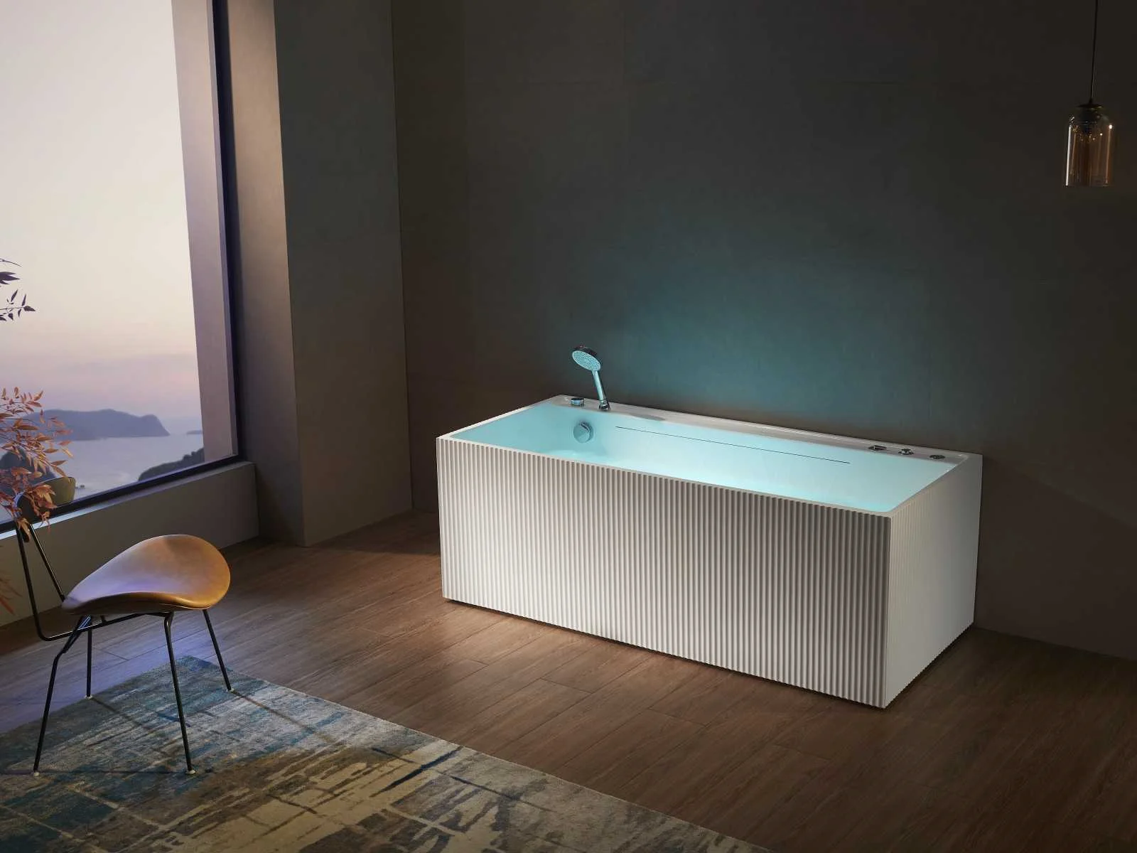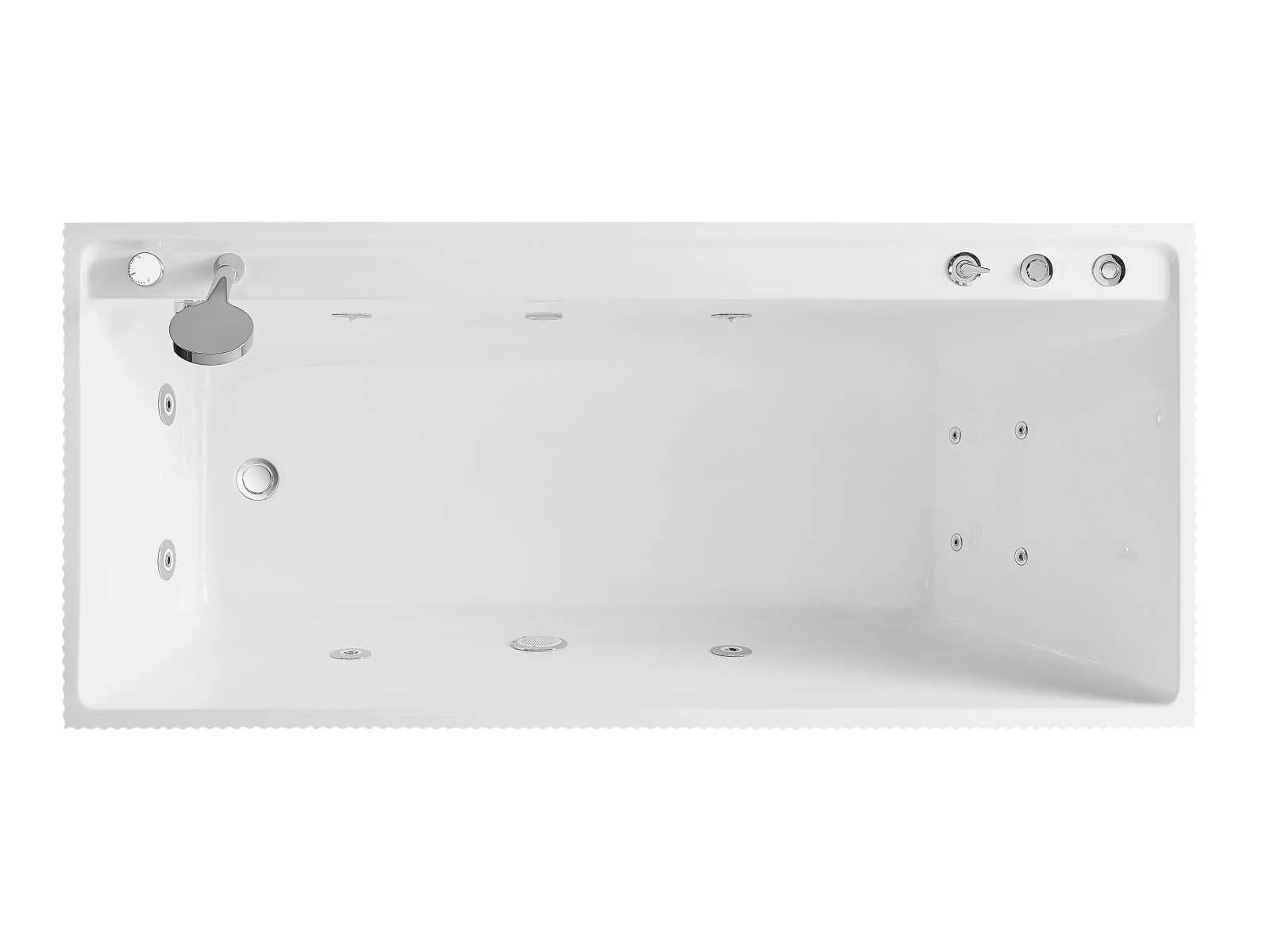 Bleutooth met speakers; de badkranen op de rand van het bad zijn gemaakt van verchroomd messing; 10 hydro massagejets; 1,5pk massagepomp, waterval massagestraal; massagejets regelbaar; droogloop beveiliging; led verlichting met kleurentherapie; pop-up afvoer met flexibele waterslang; stroom 220v (met plug and play stekker); handdouche met kraanwerk; onderstel verstelbaar van RVS Merk: Mawialux Kleur: glans wit Gewicht: 75kg Lengte: 170cm Breedte: 75cm Hoogte: 59cm Materiaal: 7 mm acryl verstevigd met polyester en messing kraanwerk