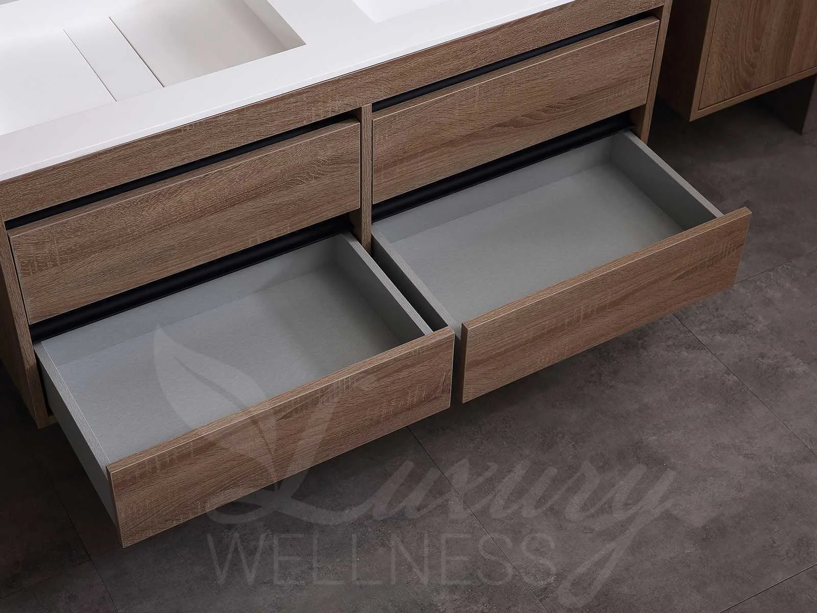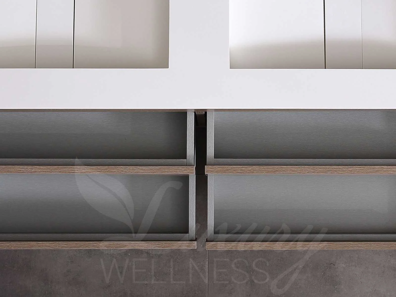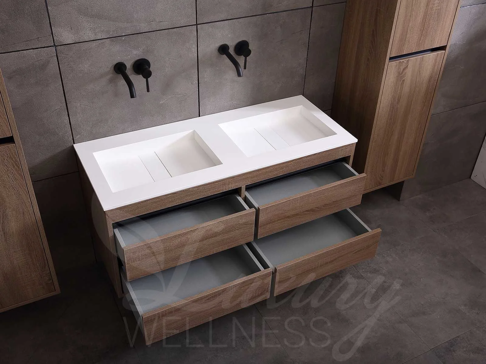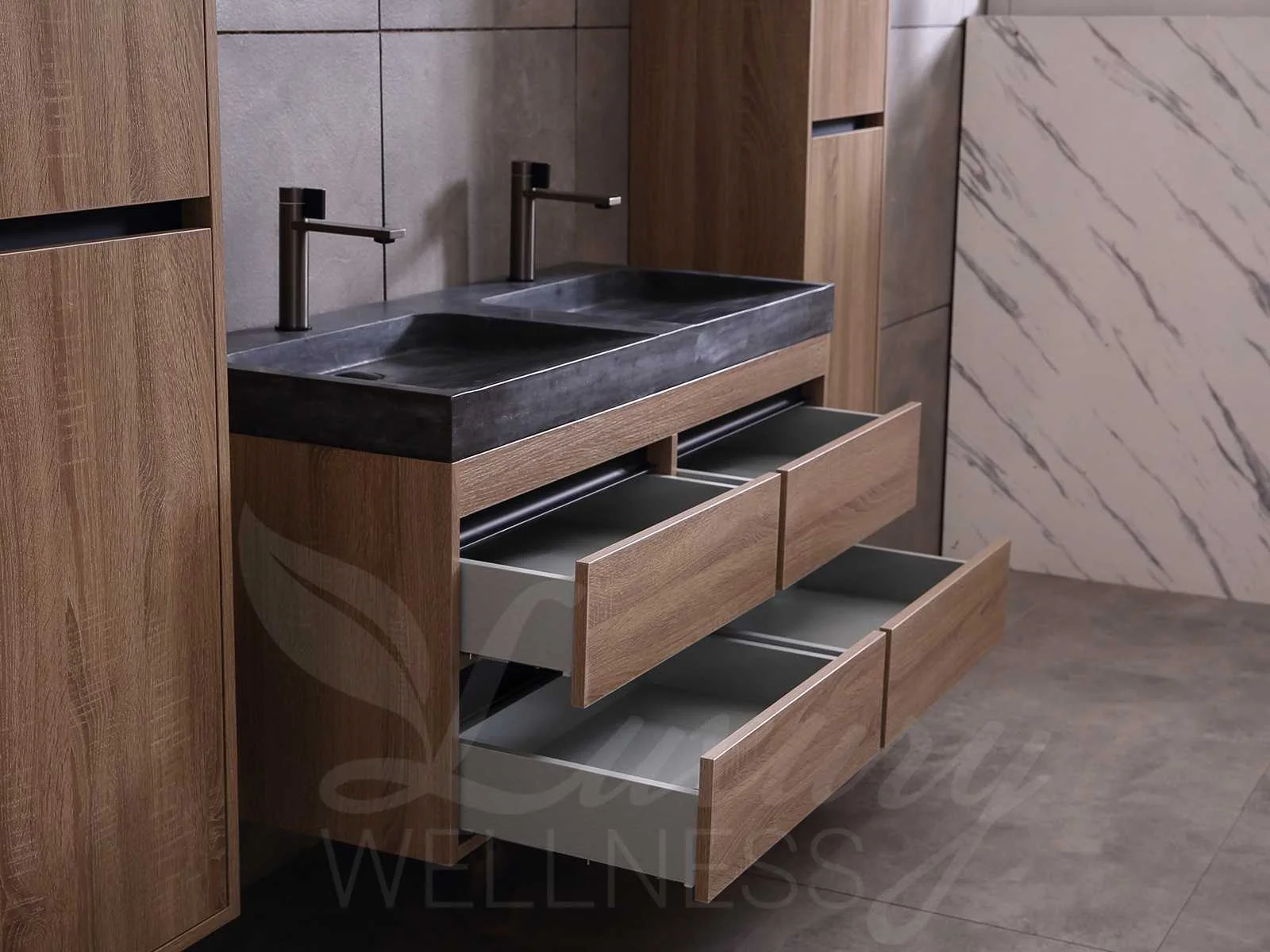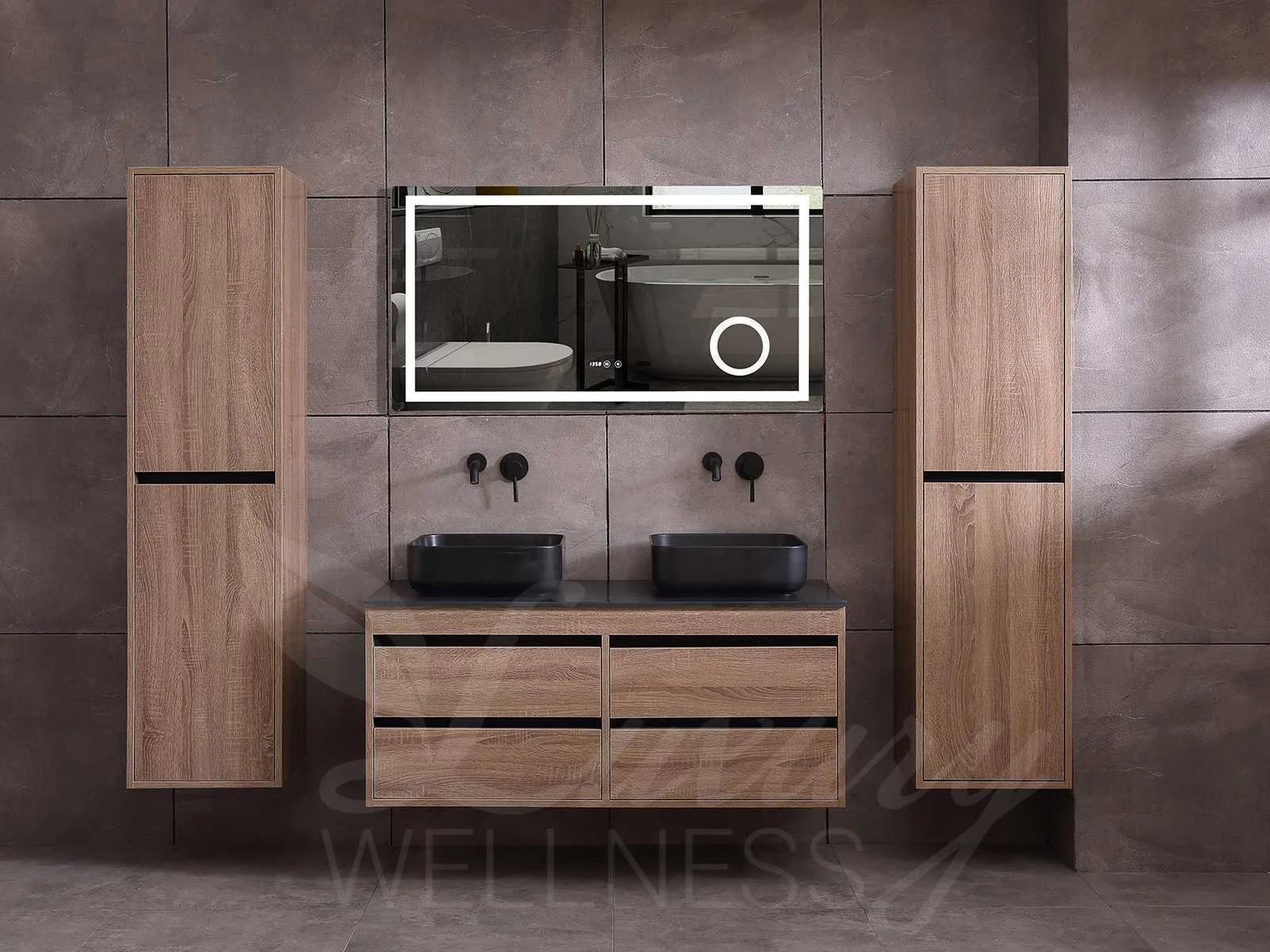 Afmeting meubel: bxdxh 120x49x50cm - hangkast 40x35x160cm, Kleur bruin eiken, Materiaal 2cm 5-laags multiplex(zeer sterk en vochtbestendig), Hangkast softclose deuren en extra planchets (hangkast is universeel en kan zowel links als rechts naast het meubel gehangen worden), Kranen exclusief , Lades 4 stuks met softclose, Wastafel natuursteen of solid surface (keuze uit diverse modellen van de laatste foto's vaste of losse wasbakken met een mat witte of mat zwarte solid surface top, vaste bakken zijn ook zonder kraangaten beschikbaar zodat u muurkranen kunt gebruiken! Keuze graag aangeven op de afhaaldag), Spiegel ledspiegel met ledverlichting(6000K led-dioden)/vergrootglas/verwarming(anti condens)/klok met touchscreen (mag ook voor een 80 of 100cm ronde spiegel geruild worden indien gewenst of tegen een kleine meerprijs een luxure variant met display, bluetooth en speakers, neem daarvoor contact met ons op voor een passende aanbieding op info@mawialux.nl), Afvoeren exclusief , Conditie: Nieuw in doos, Bijzonderheden 2 jaar garantie, compleet met installatiekit, mat zwarte aluminium grepen achter de inkepingen van de lades en deuren, natuursteen wastafel is behandeld met coating, zeer hoge kwaliteit, Extra's de hangkast mag geruild worden voor een set kranen en popup afvoeren naar keus(graag aangeven op de afhaaldag) of als u een extra hangkast nodig heeft kunt u ons ook mailen voor een passende aanbieding Merk: mawialux Hoogte: 50cm Lengte: 49cm Breedte: 120cm Materiaal: 2cm 5-laags multiplex(zeer sterk en vochtbestendig) Kleur: bruin eiken Spiegel met verlichting: ja Lades: 4