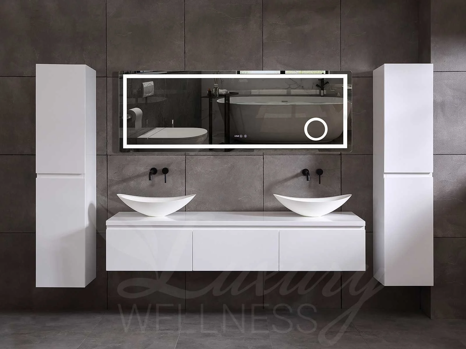 Afmeting meubel keuze uit 2 maten bxdxh 150x50x35cm of 180x50x35cm (keuze breedte graag doorgeven op de afhaaldag - hangkast 35x35x160cm (wordt er 1 bij geleverd), kleur mat wit, materiaal 5-laags multiplex met 3cm eiken top(zeer sterk en vochtbestendig), Hangkast softclose deuren en extra planchets (hangkast kan zowel links als rechts van het meubel worden gehangen), kranen exclusief , Lades 2 stuks met softclose, Wasbakken solid surface, natuursteen of italiaans marmer (keuze uit diverse modellen van de laatste 3 foto's, graag keuze doormailen op info@mawialux.nl), spiegel met verwarming/klok/temperatuur en vergrootglas met ledverlichting met 3 verstelbare kleuren led 3000/4500/6000k led-dioden (geel/blauw/wit licht) met de volgende opties: digitaal display, geïntegreerde vergrotingsspiegel van 10cm doorsnede met ledverlichting(vergroot 3x), digitale klok, digitale temperatuur aanduiding, 220volt stekker(plug and play), verwarming ter voorkoming van condens, 1.5mm kopervrij met explosion-proof laag met dezelfde functie als gehard glas , afvoeren exclusief, Conditie: Nieuw in doos, Bijzonderheden 2 jaar garantie, gaten zijn niet in het topblad voorgeboord zodat u zowel muurkranen als kranen vanaf het blad kunt gebruiken of zelf 1 wastafel in plaats van 2 stuks(gaten boren door een installateur is zelf gemakkelijk uit te voeren), compleet met installatie materiaal, zeer hoge kwaliteit, let op! de hangkast mag geruild worden voor een set kranen en popup afvoeren naar keus of als u een extra hangkast nodig graag op de afhaaldag aangeven voor een passende aanbieding Merk: Mawialux Model: Jeremy Breedte: 150-180cm Kleur: mat wit Kraan: exclusief Wastafel: Diverse keuzes Lades: 3 Softclose: true Bevestigingsmateriaal: true Zijkast: ja