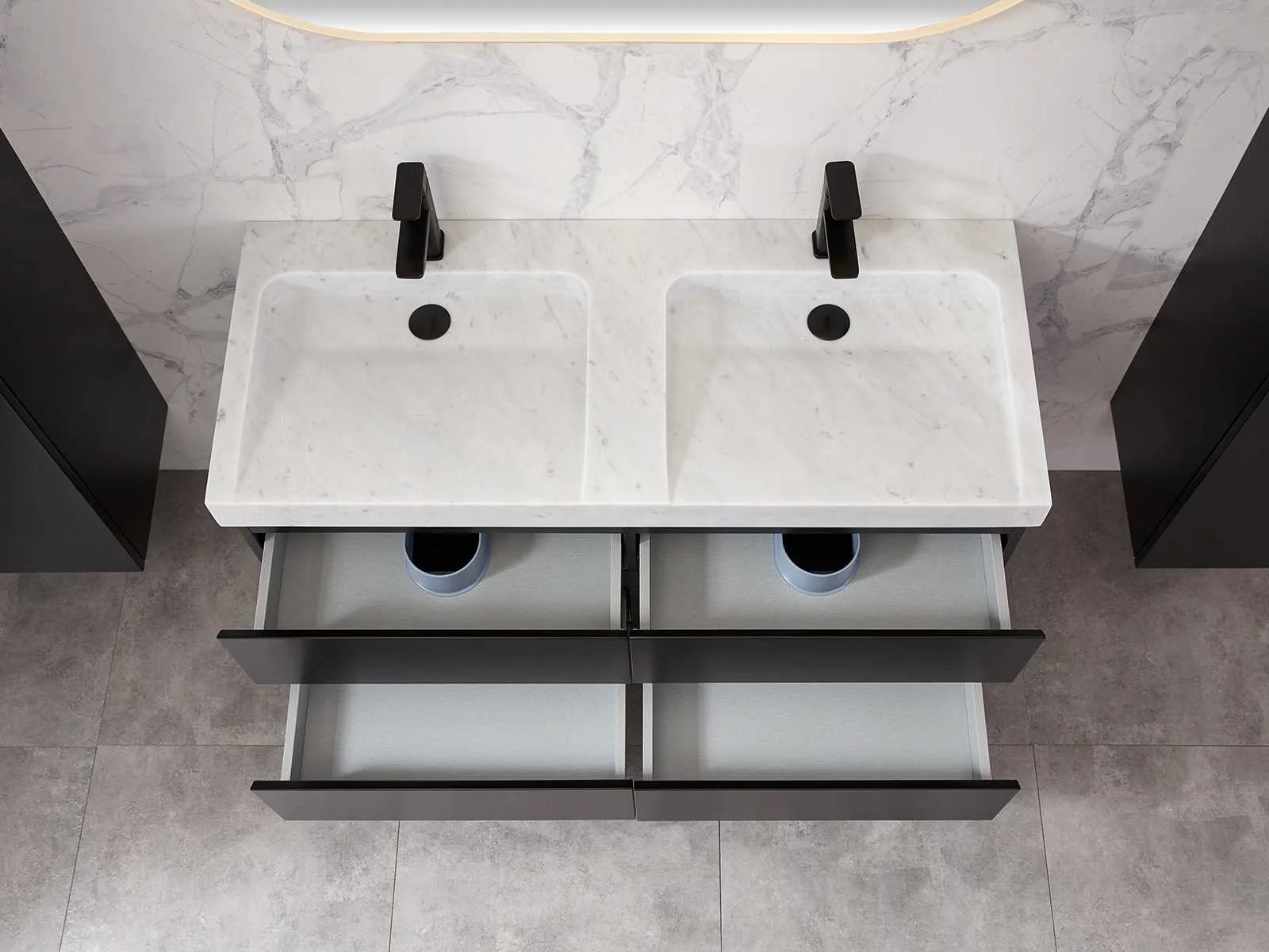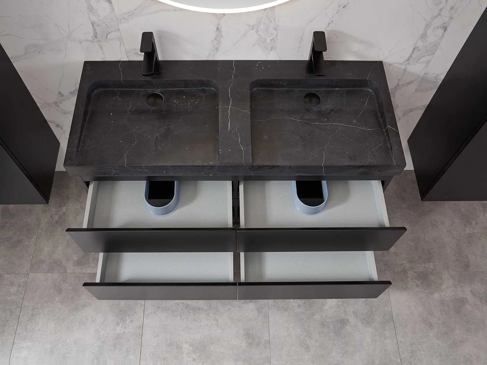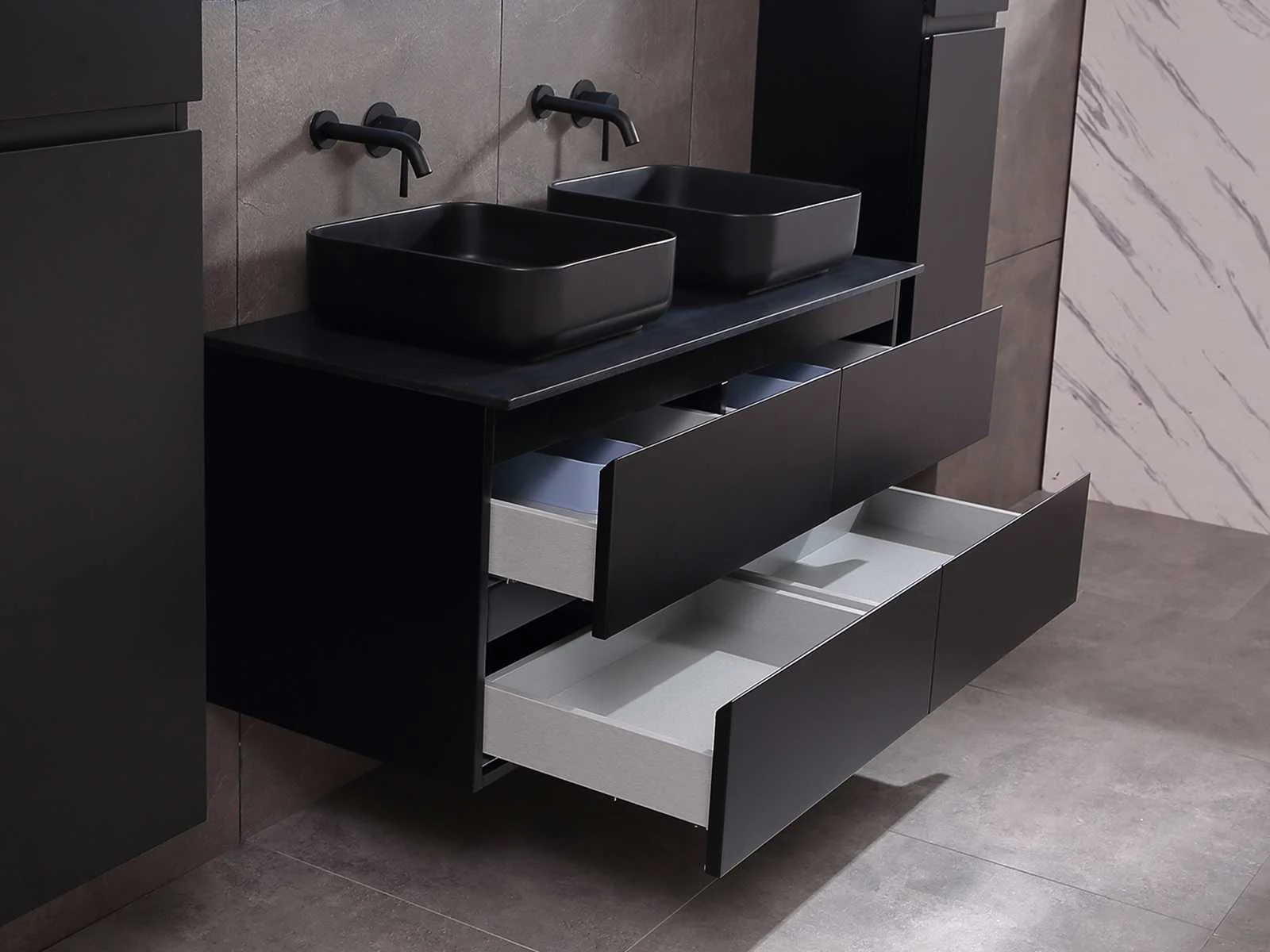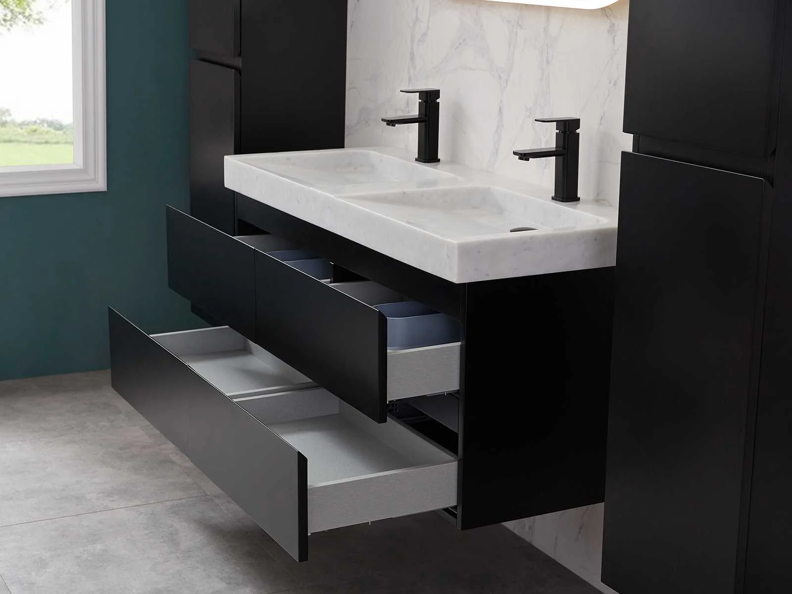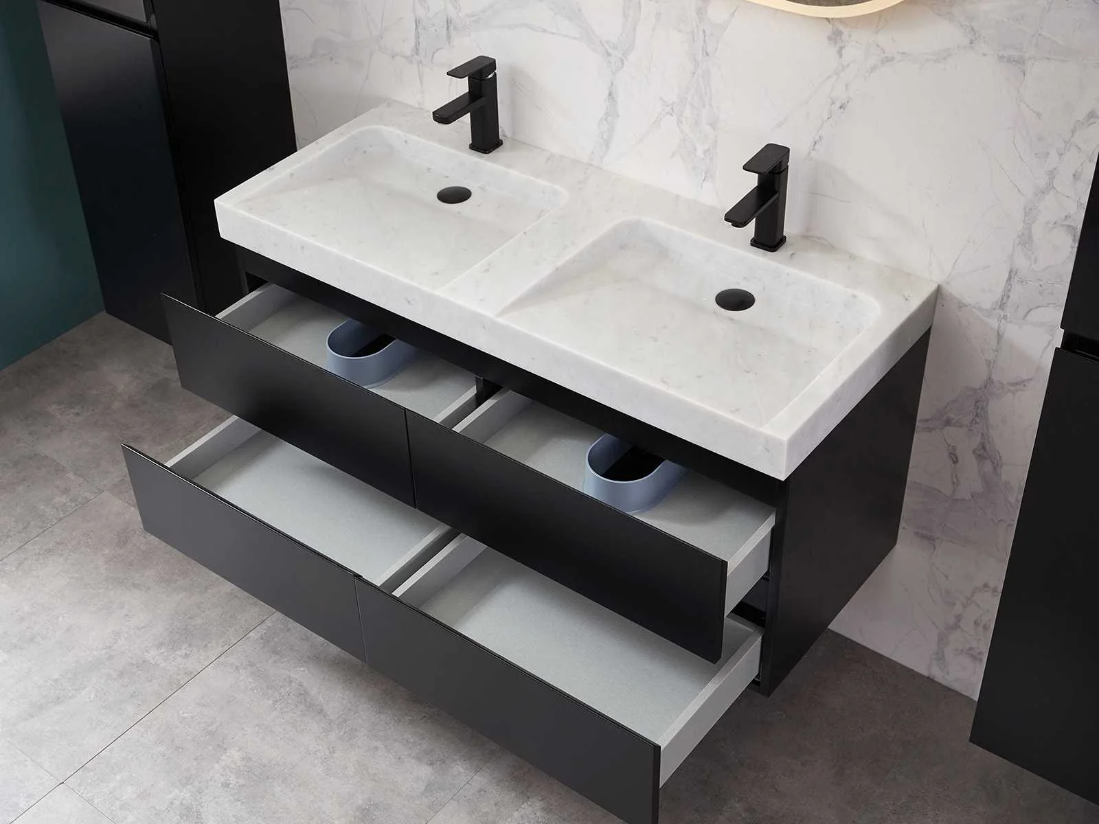 Afmeting meubel: bxdxh 120x49x50cm - hangkast 35x35x160cm, Materiaal 2cm 5-laags multiplex(zeer sterk en vochtbestendig), Hangkast softclose deuren en extra planchets (hangkast is universeel en kan zowel links als rechts naast het meubel gehangen worden), Kranen exclusief , Lades 4 stuks met softclose, Wastafel natuursteen of solid surface (keuze uit diverse modellen van de laatste foto's vaste of losse wasbakken met een mat witte of mat zwarte solid surface top, vaste bakken zijn ook zonder kraangaten beschikbaar zodat u muurkranen kunt gebruiken! Keuze graag aangeven op de afhaaldag), verwarming, bediening one-touch (voor heater, verlichting, bluetooth en instellingen), Verlichting aan de achterkant met met 3 verstelbare en dimbare kleuren LED 3000/4500/6000K LED-dioden (geel/blauw/wit licht), voorzien van digitaal display, geïntegreerde vergrotings spiegel van 10cm doorsnede met ledverlichting(vergroot 3x), bluetooth met speaker, digitale klok, digitale temperatuur aanduiding, 220volt stekker(plug and play), glas 1.5mm kopervrij met explosion-proof laag (mag uit diverse modellen gekozen worden welke in de afbeeldingen zijn afgebeeld, keuze graag aangeven op de afhaaldag), Afvoeren exclusief , Conditie: Nieuw in doos, Bijzonderheden 2 jaar garantie, compleet met installatiekit, mat zwarte aluminium grepen achter de inkepingen van de lades en deuren, natuursteen wastafel is behandeld met coating, zeer hoge kwaliteit, Extra's de hangkast mag geruild worden voor een set kranen en popup afvoeren naar keus(graag aangeven op de afhaaldag) Merk: Mawialux Breedte: 120cm Kleur: mat zwart Kraan: nee Wastafel: ja Waskom: ja Spiegel met verlichting: ja Onderkast: ja Lades: 4 Softclose: true Zijkast: ja Afmeting hangkast: 160x30x35