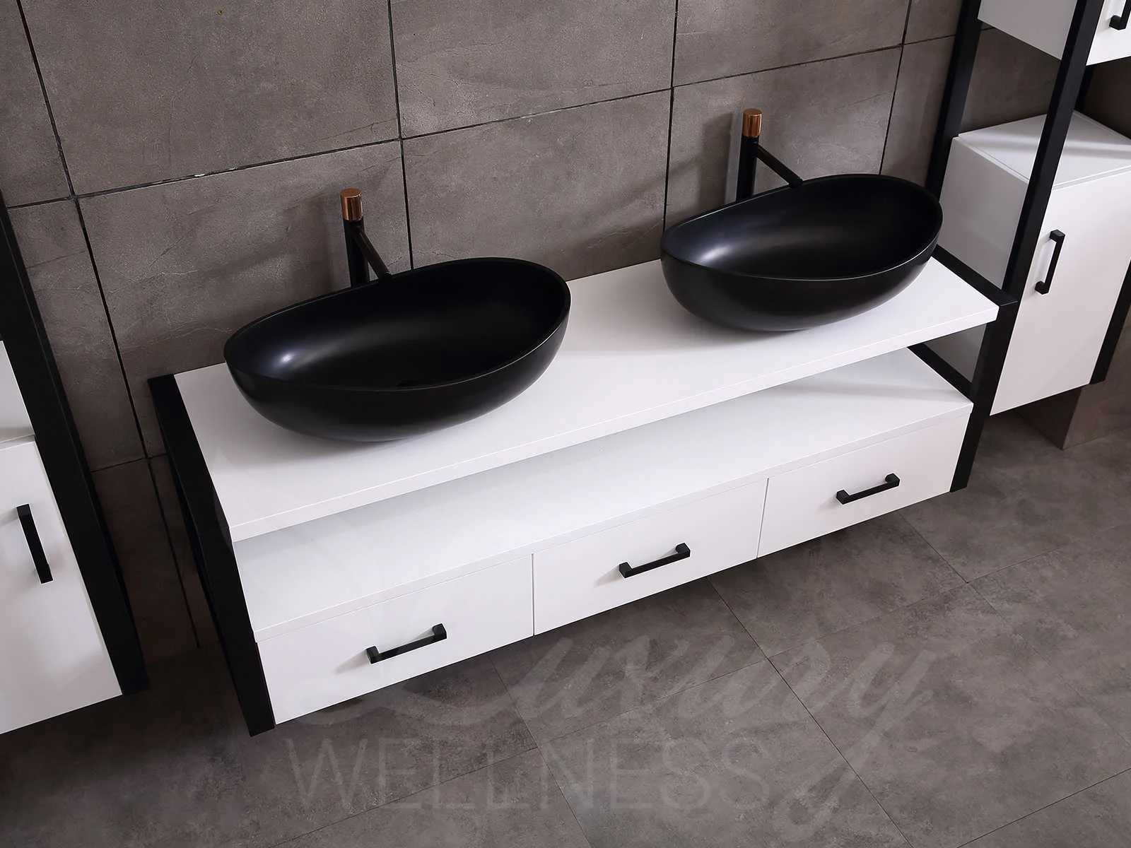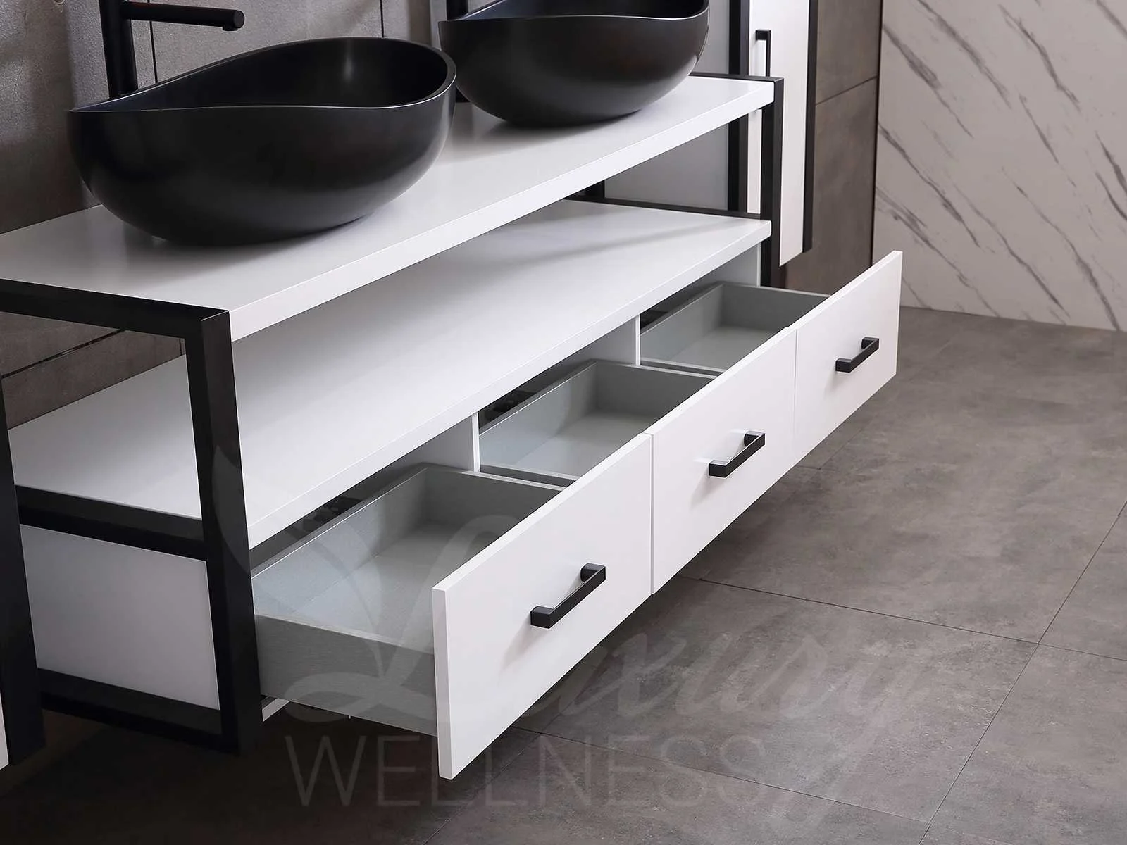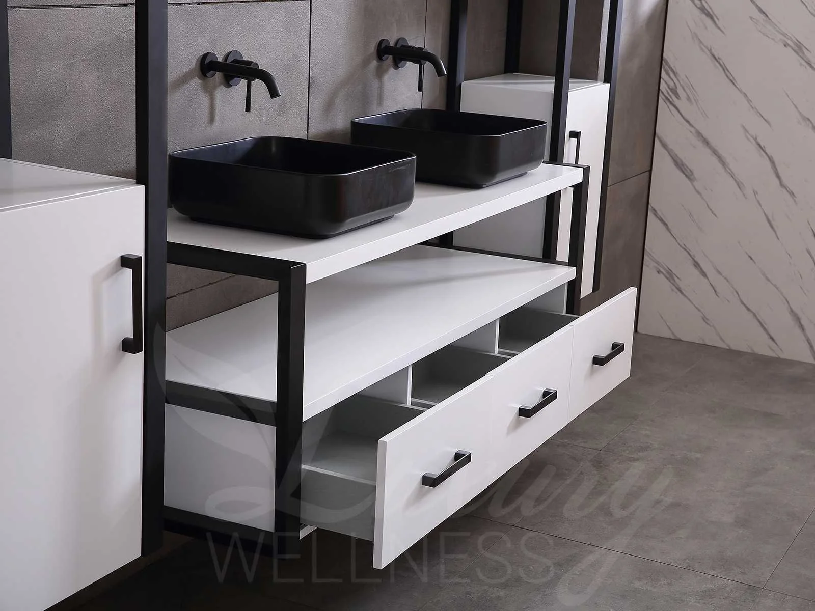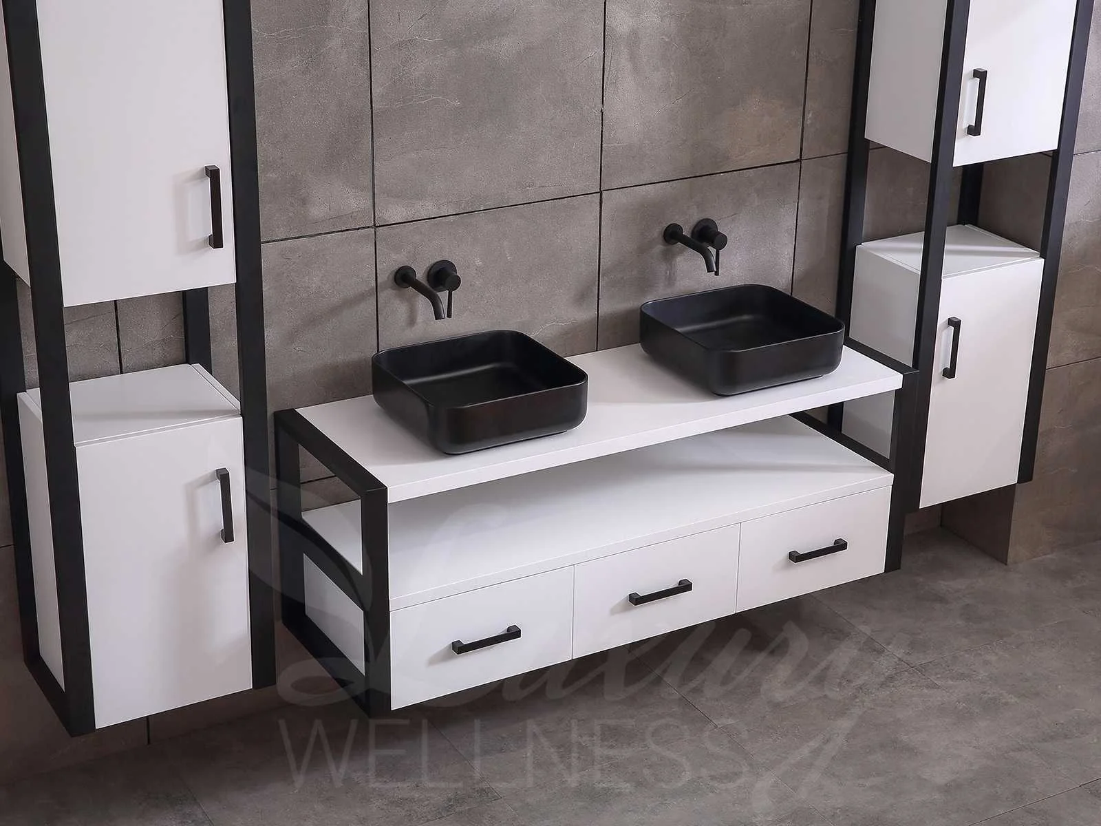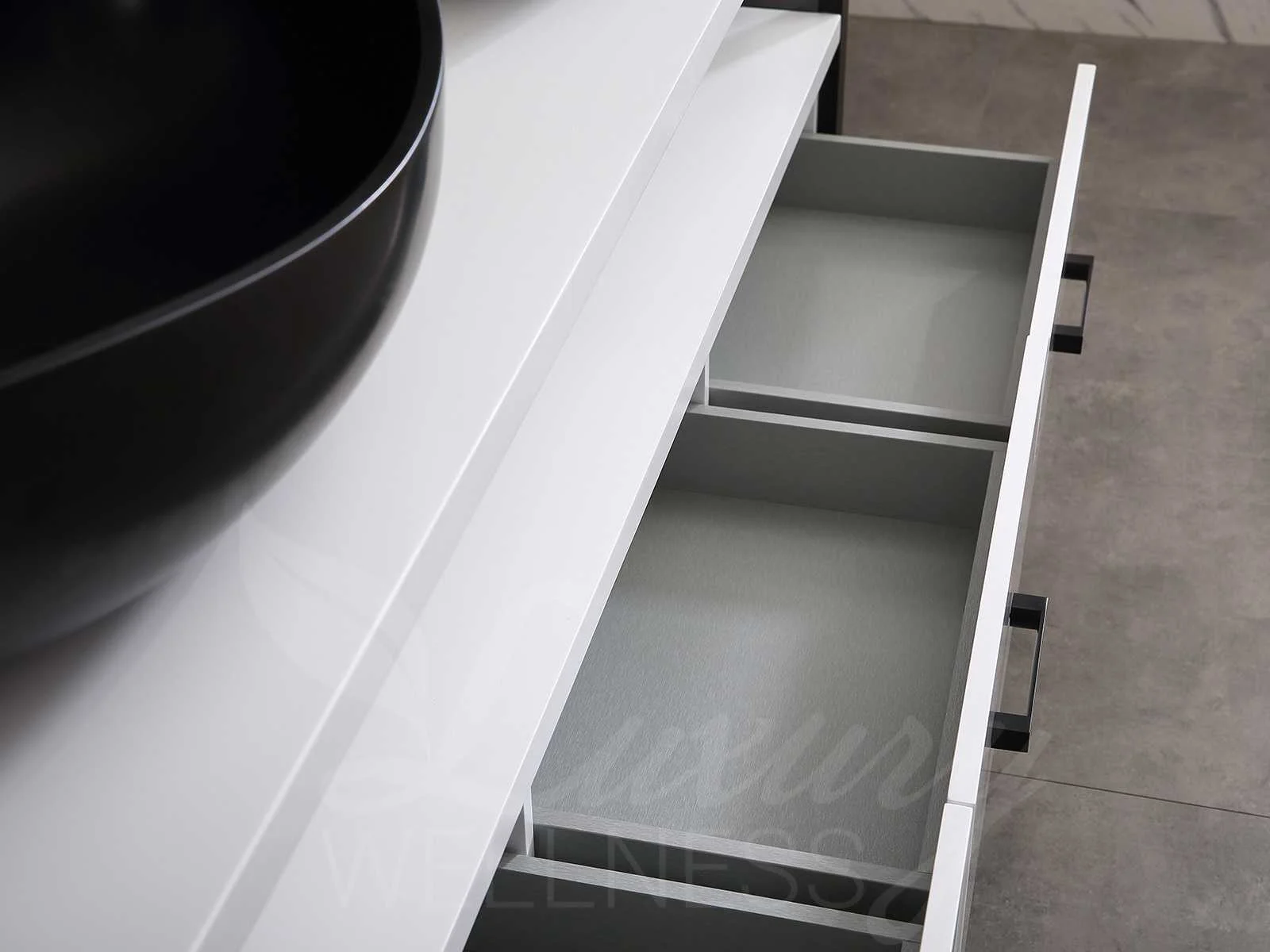 Afmeting meubel bxdxh 150x50x55cm - hangkast 35x35x160cm, kleur mat wit, materiaal 5-laags multiplex(zeer sterk en vochtbestendig), Hangkasten softclose deuren en extra planchets (hangkast is universeel en kan zowel links als rechts naast het meubel gehangen worden), kranen exclusief , Lades 2 stuks met softclose, Wastafel natuursteen of solid surface (keuze uit diverse modellen van de laatste foto's, kraangaten zijn nog niet in het top voorgeboord zodat u muurkranen of kranen uit het blad kan gebruiken, led spiegel met verwarming en ledverlichting, 220volt stekker(plug and play), verwarming ter voorkoming van condens, 1.5mm kopervrij met explosion-proof laag met dezelfde functie als gehard glas(de spiegel mag geruild worden voor een ander model/type), afvoeren exclusief, Conditie: Nieuw in doos, Bijzonderheden 2 jaar garantie, compleet met installatie materiaal, zeer hoge kwaliteit, let op! de hangkast mag geruild worden voor een set kranen en popup afvoeren naar keus of als u een extra hangkast nodig graag op de afhaaldag aangeven voor een passende aanbieding Merk: Mawialux Model: Philip Hoogte: 55cm Lengte: 50cm Breedte: 150cm Materiaal: 5-laags multiplex Kleur: Mat wit Kraan: exclusief Wastafel: diverse keuzes Waskom: diverse keuzes Spiegel met verlichting: ja Verlichting: ja Lades: 3 Softclose: true Bevestigingsmateriaal: true Zijkast: ja 1x Afmeting hangkast: LxBxH 35x35x160