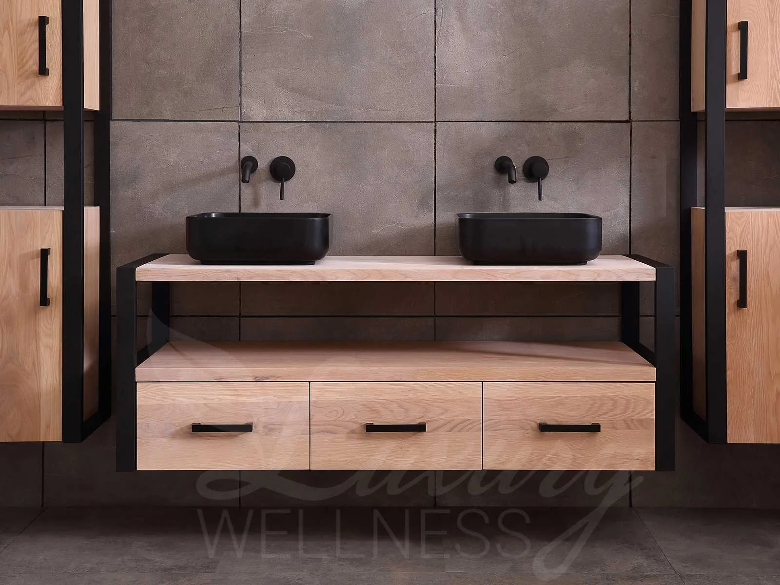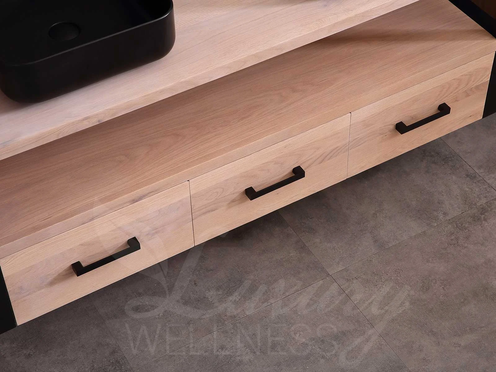 Afmeting meubel bxdxh 150x50x55cm - hangkasten 45x35x160cm(5cm rvs frame per kant), kleur eiken natural, materiaal 2cm massief eiken (front) met 3cm massief top overige en 5-laags multiplex(zeer sterk en vochtbestendig), Hangkast softclose deuren en extra planchets (hangkast is universeel en kan zowel links als rechts naast het meubel gehangen worden), kranen exclusief , Lades 2 stuks met softclose, Wastafel natuursteen of solid surface (keuze uit diverse modellen van de laatste foto's, kraangaten zijn nog niet in het top voorgeboord zodat u muurkranen of kranen uit het blad kan gebruiken, led spiegel met verwarming/klok en vergrootglas met ledverlichting, geïntegreerde vergrotingsspiegel van 10cm doorsnede met ledverlichting(vergroot 3x), digitale klok, digitale temperatuur aanduiding, 220volt stekker(plug and play), verwarming ter voorkoming van condens, 1.5mm kopervrij met explosion-proof laag met dezelfde functie als gehard glas(de spiegel mag geruild worden voor een ander model/type), afvoeren exclusief, Conditie: Nieuw in doos, Bijzonderheden 2 jaar garantie, compleet met installatie materiaal, zeer hoge kwaliteit, let op! 1 hangkast mag geruild worden voor een set kranen en popup afvoeren naar keus (graag op de afhaaldag aangeven) Merk: Mawialux Model: Philip Hoogte: 55cm Lengte: 50cm Breedte: 150cm Materiaal: Eiken Kleur: Eiken white wash Kraan: exclusief Wastafel: diverse keuzes Waskom: diverse keuzes Spiegel met verlichting: ja Verlichting: ja Lades: 3 Softclose: true Bevestigingsmateriaal: true Zijkast: ja 2x Afmeting hangkast: LxBxH 35x45x160