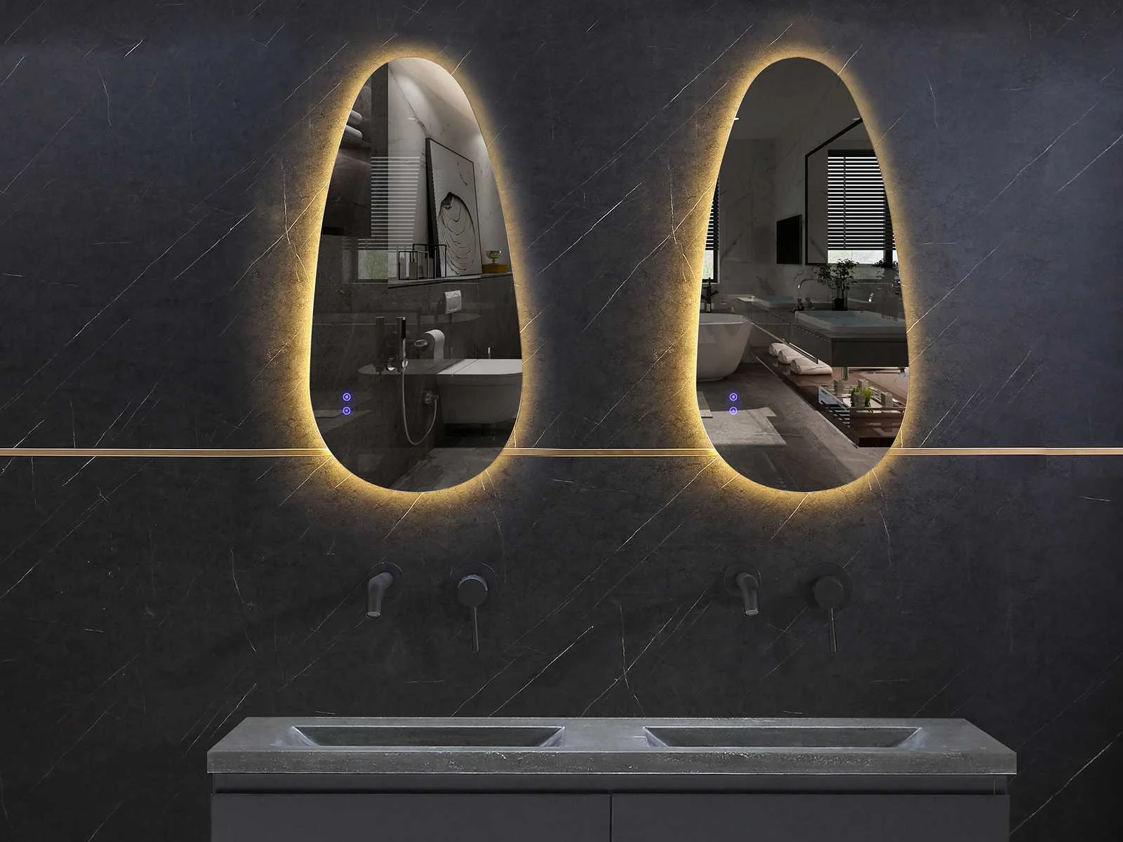 LET OP: keuze uit 2 maten namelijk 160x85 of 180x75 en spiegel is ook in spiegelbeeld verkrijgbaar (met het dikke gedeelte links) keuze graag aangeven op afhaaldag, verwarming, bediening 2x one-touch touchebediening, verlichting 3 verstelbare kleuren led 3000/4500/6000k led-dioden(dimbaar) (geel/blauw/wit licht), voorzien van 4 geïntegreerde ophangpunten, 220volt stekker(plug and play), 1.5mm kopervrij glas met explosion-proof laag, er zitten 4 ophangpunten achter de spiegel waardoor je spiegel zowel horizontaal als verticaal op kunt hangen (past dus zowel op een 80cm als een 50cm breed meubel en diverse andere 1 of 2-persoons meubels), zeer exclusieve spiegel Merk: Mawialux Model: Darla Breedte: 160-180cm Hoogte: 75-85cm Touchscreen: true