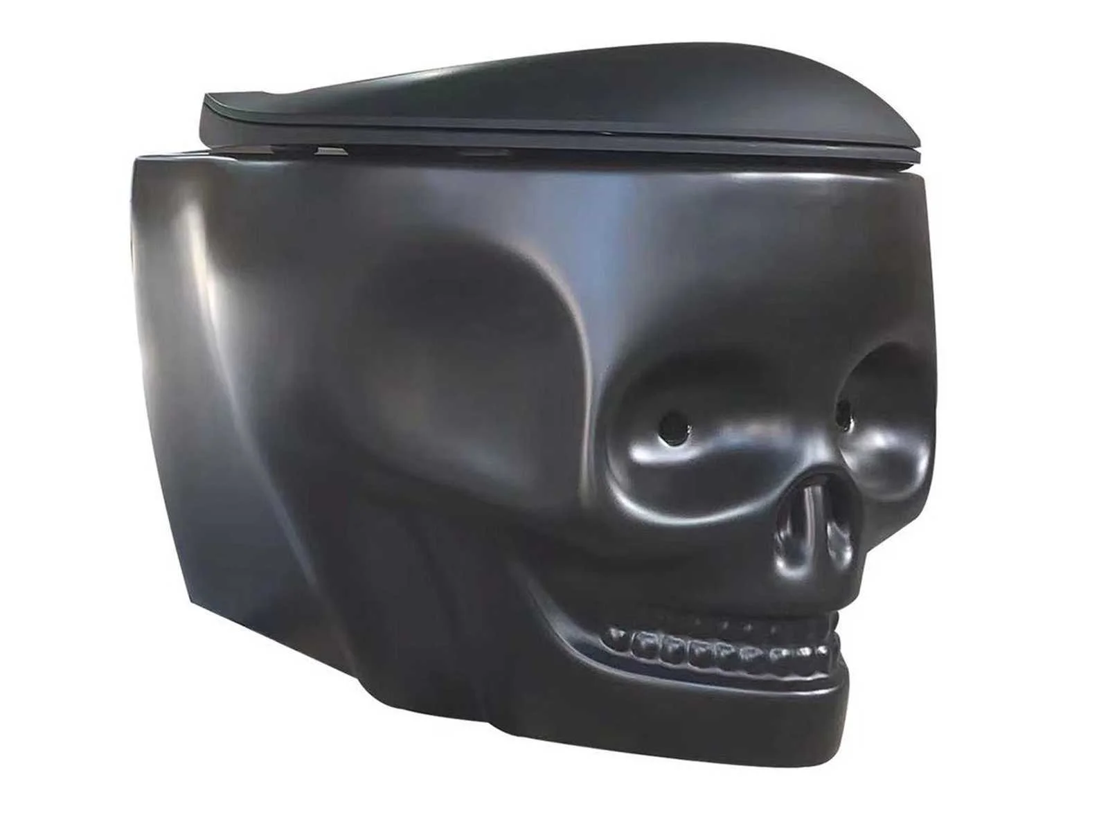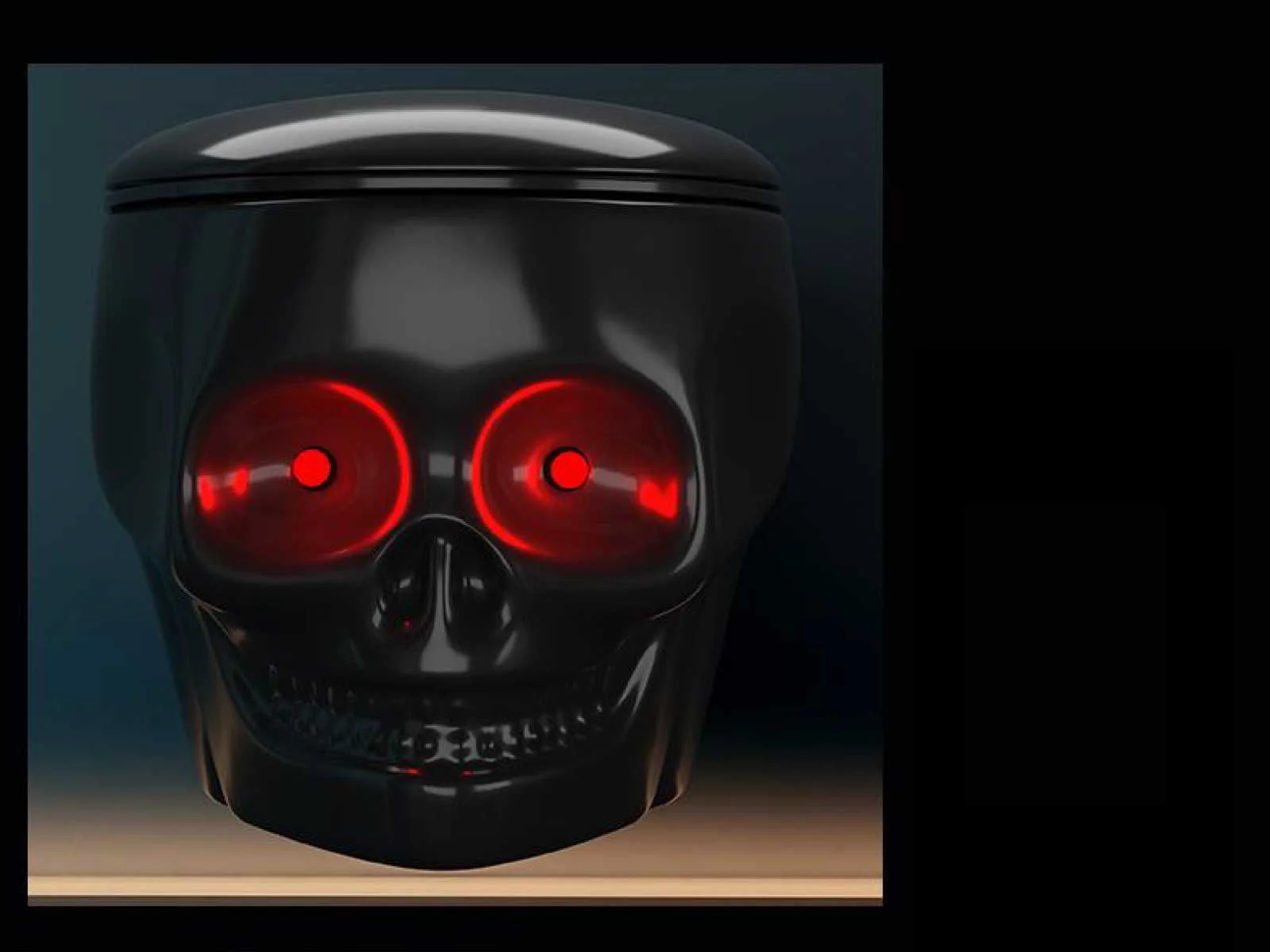 Type doodskop, afmetingen lxbxh 53,5x39x35cm, materiaal keramiek en kunststof, kleur mat zwart, toiletbril softclose met deksel, afvoer p-trap, gewicht 30 kg, toilet is gegoten en geglazuurd en later in in de oven verhard waardoor deze zeer krasbestendig is, 2x ledverlichting in de ogen verwerkt welke op een bewegingssensor op batterijen werkt )exclusief 4xaaa batterijen), tornado rimless flushing systeem (geen spoelrand), compleet geleverd met bevestigings materiaal, universeel toepasbaar op ieder inbouwreservoir, quick release deksel Merk: Mawialux Model: Skull