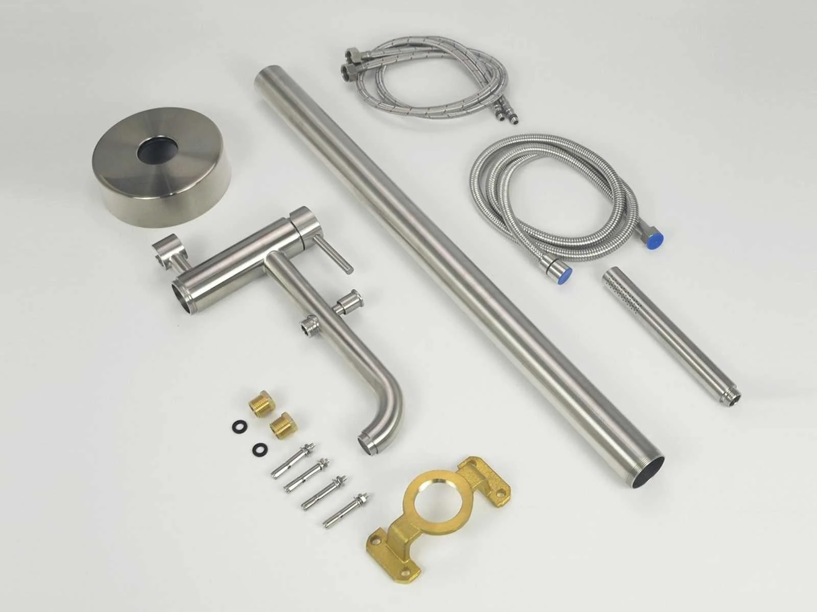 Materiaal messing, keuze kleuren: gunmetal grey of geborsteld rvs (kleurkeuze aangeven op de afhaaldag), Binnenwerk keramisch, Hoogte 90 cm, Handdouche ja met flexibele doucheslang en verstelbare ophanging, Voorzien van mengkraan, hendel voor schakeling tussen Handdouche of badkraanuitloop, vloerplaat, waterleidingen, aansluitmateriaal, LET OP: dit artikel kan gratis bezorgd worden binnen de Benelux(neem hiervoor contact met ons op via info@mawialux.nl) Merk: Mawialux Model: lagos Kleur: beschikbaar in 2 kleuren