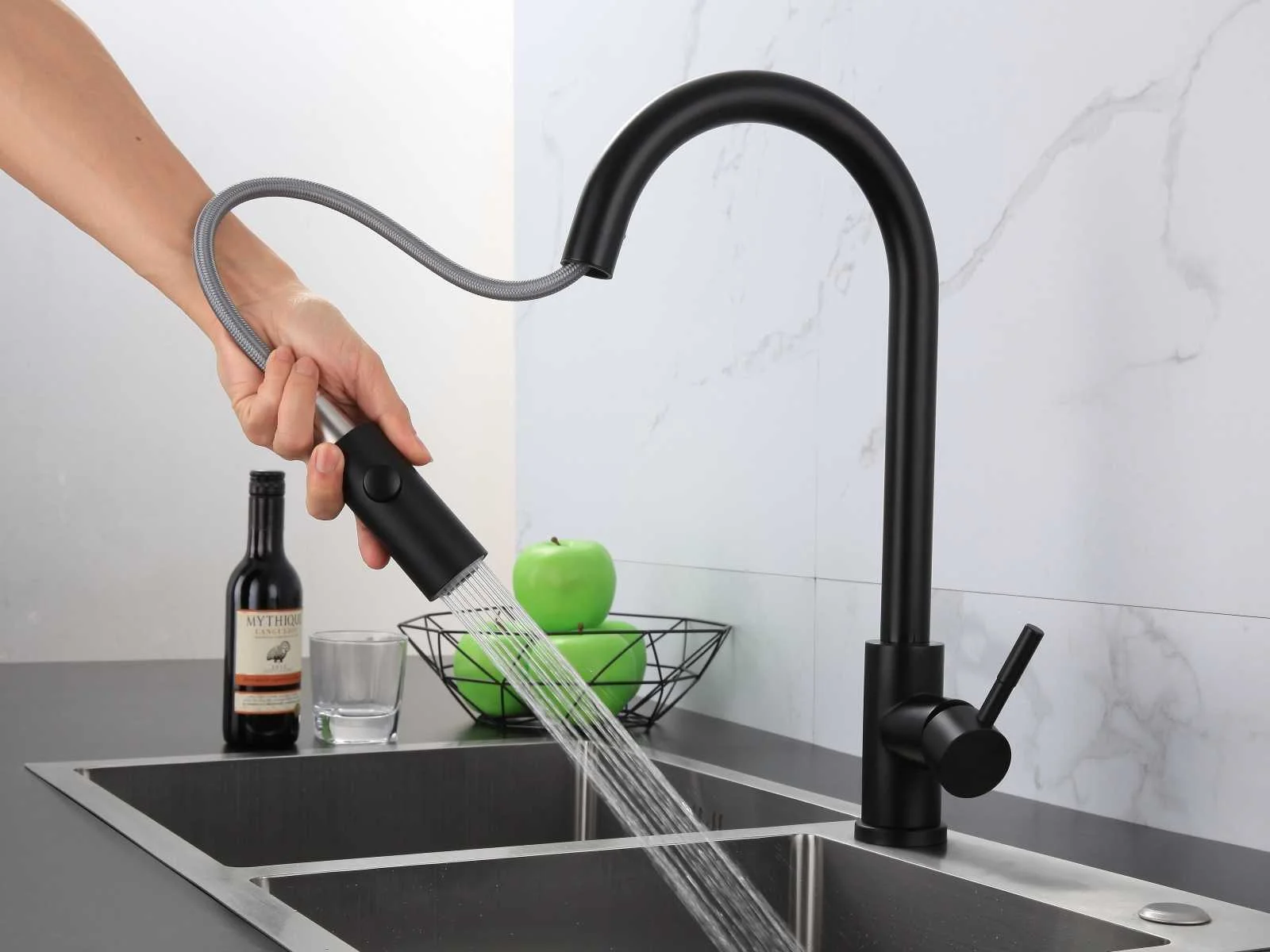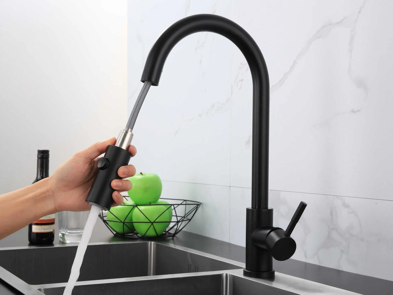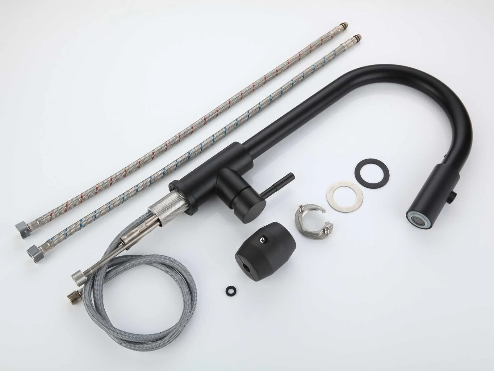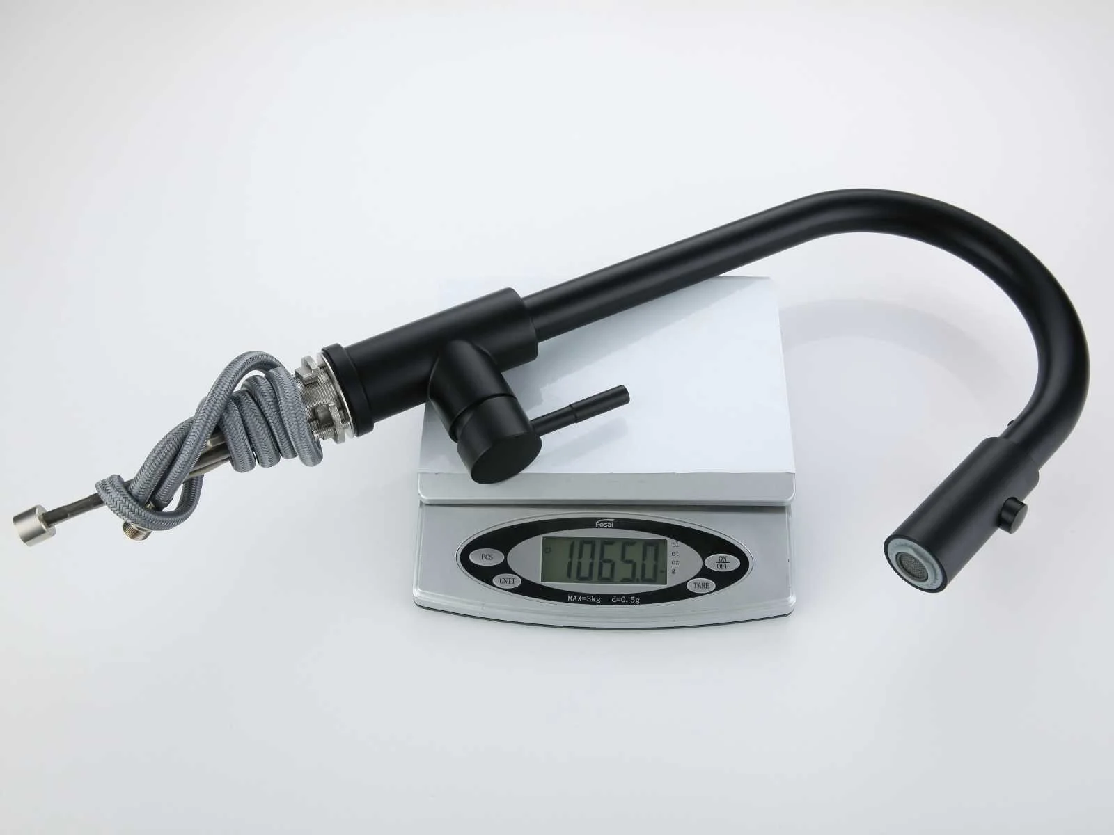 Materiaal 304 rvs, hoogte 42 cm, gewicht 2kg, voorzien van sproeikop met 2 functies, uitloop 360 graden draaibaar, waterslangen met aansluitmateriaal, sproeikop uitneembaar met extra lange flexibele waterslang, LET OP: boven een bod van 40,- euro excl BTW en veilingkosten versturen we dit product gratis binnen de benelux naar u toe per post. Merk: Mawialux Model: Viola Kleur: mat zwart