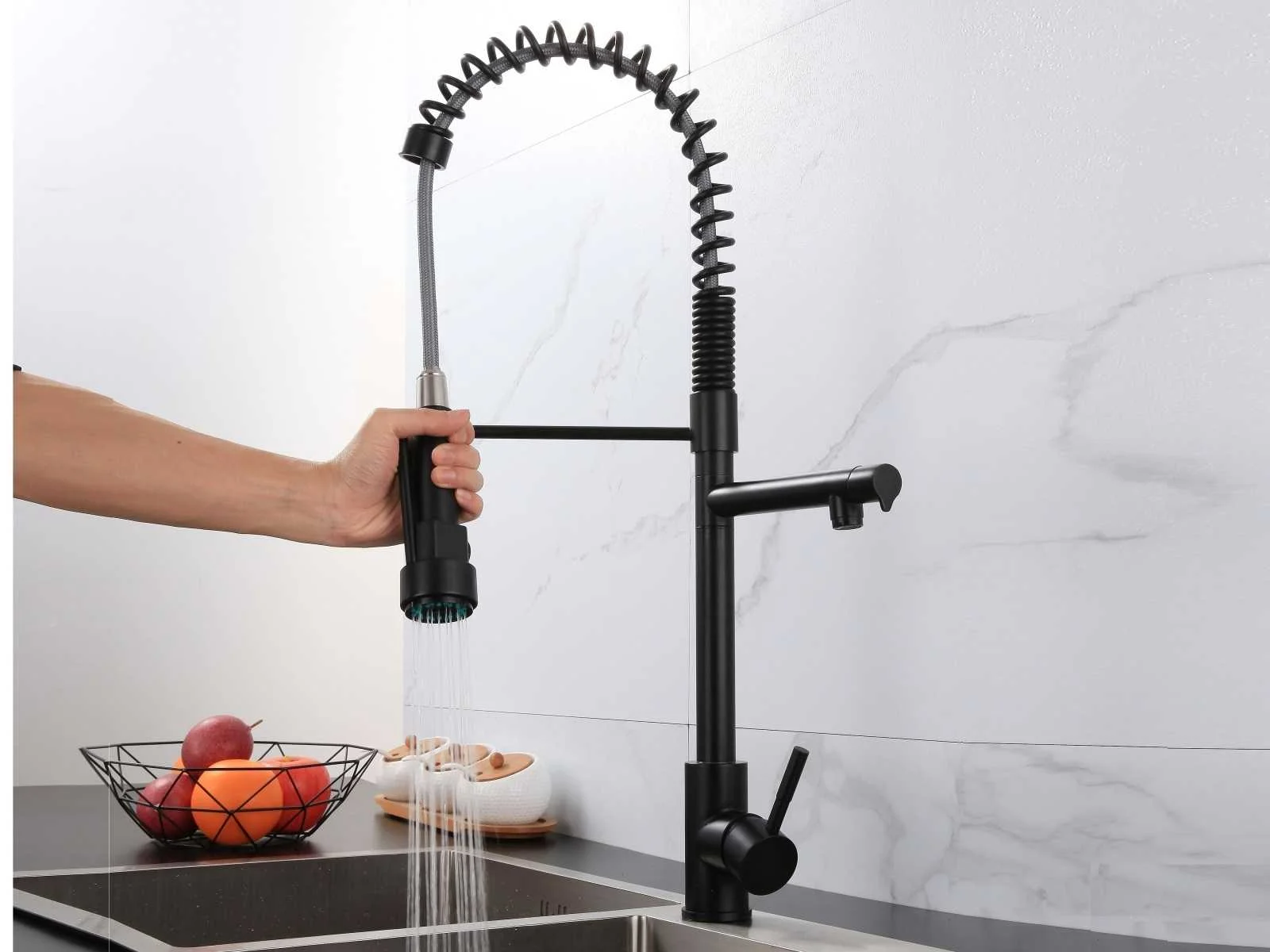 Kleurkeuze geborsteld RVS of Mat zwart of geborsteld goud of gunmetal grey (keuze graag aangeven per email op info@mawialux.nl) materiaal 304 rvs, kleur mat zwart, hoogte 37 cm, gewicht 2 kg, voorzien van uitloop 360 graden draaibaar, waterslangen met aansluitmateriaal, Kraan is uitgerust met een flexibele uitloop en een vaste uitloop. De kraan en de sproeikop kunnen beide tegelijk gebruikt worden. Dubbele uitloop los te bedienen. LET OP: boven een bod van 100,- euro excl BTW en veilingkosten versturen we dit product gratis binnen de benelux naar u toe per post. Merk: Mawialux Model: Cocos Kleur: diverse kleuren Gewicht: 3kg Hoogte: 63cm Materiaal: RVS