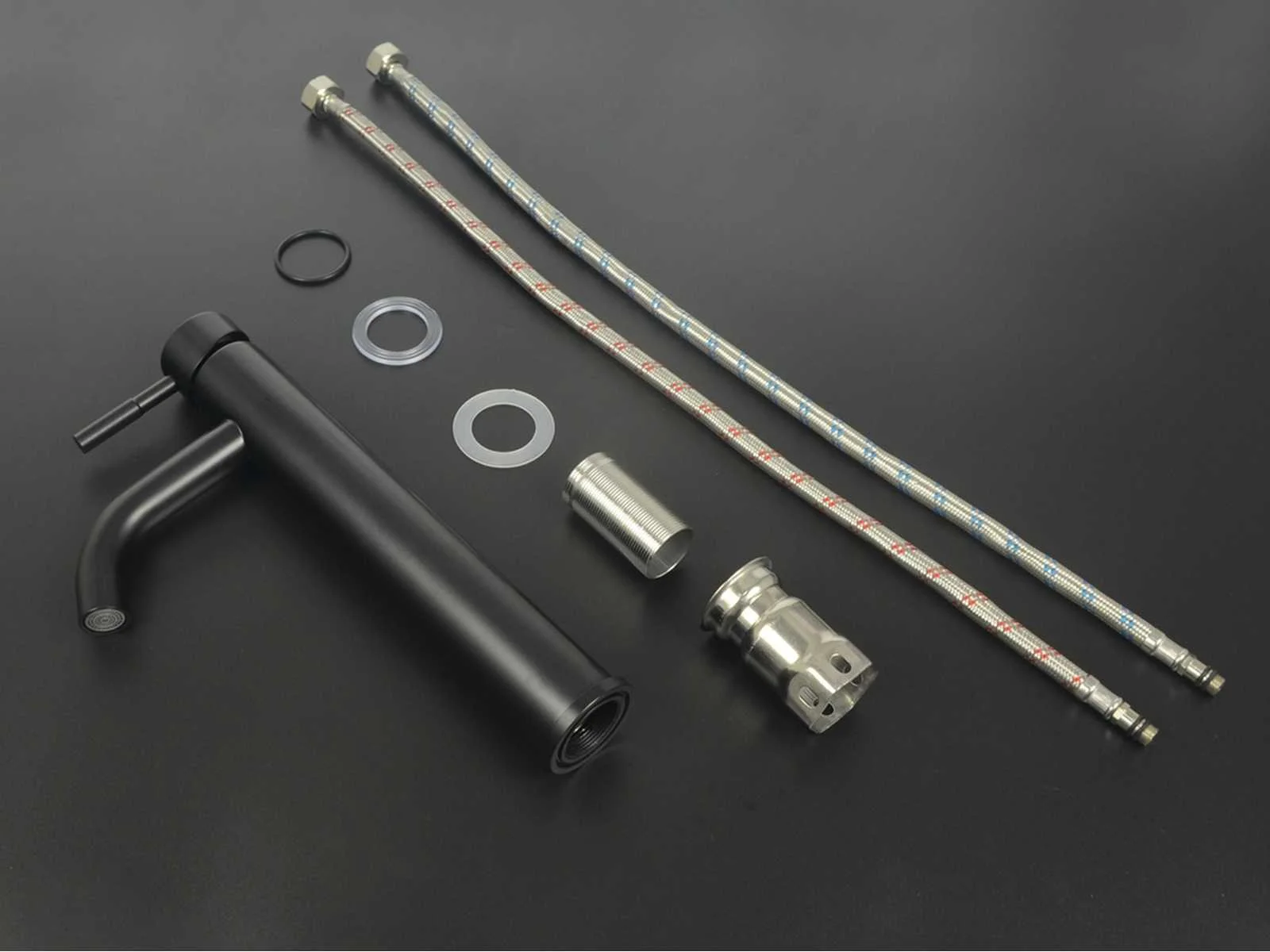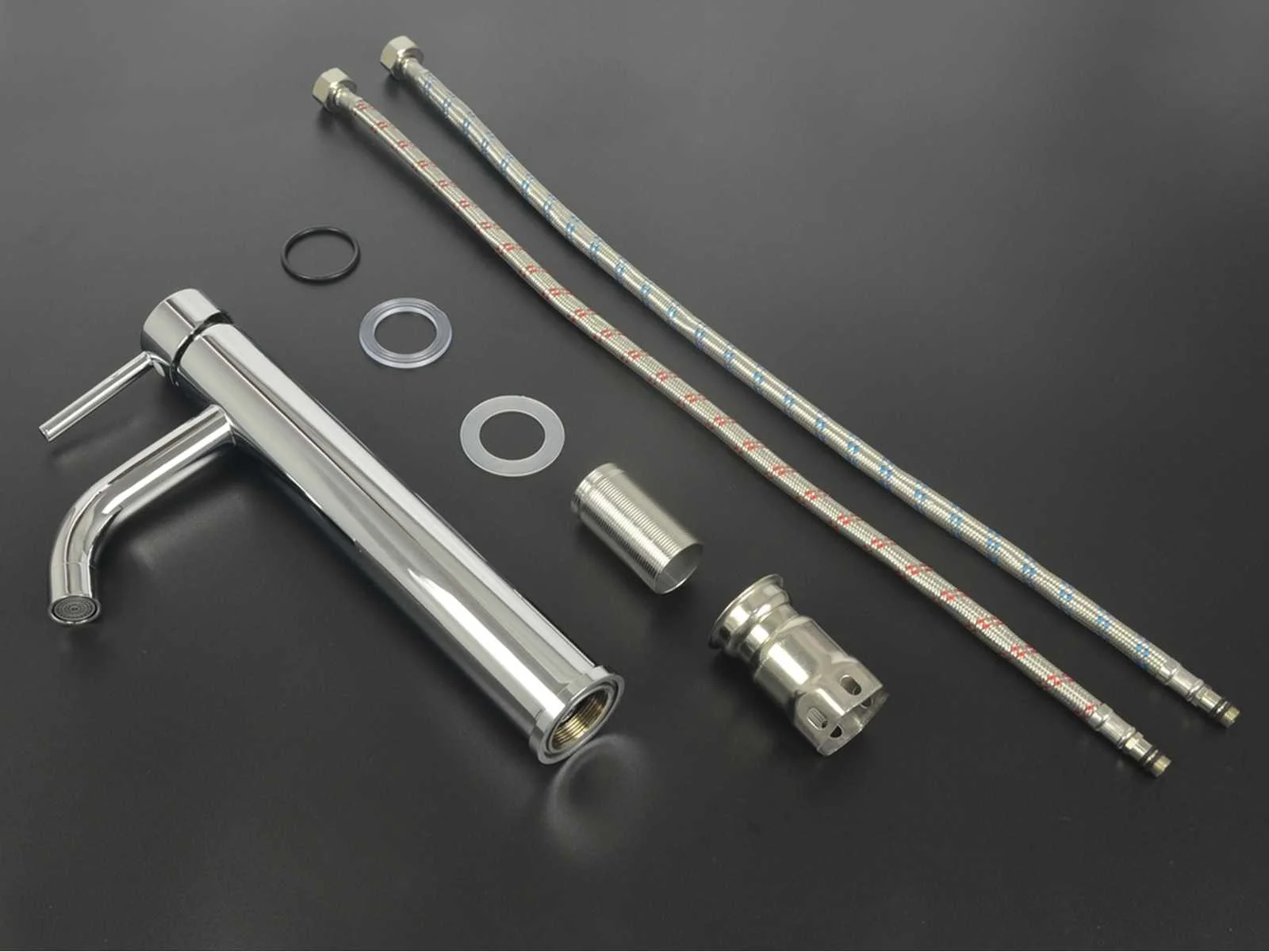 Mengkraan met keramisch binnenwerk, materiaal messing, kleurkeuze: chroom, geborsteld rvs, geborsteld goud, mat zwart(kleurkeuze graag aangeven op de afhaaldag), hoogte 28,5 cm, voorzien van waterslangen met aansluit materiaal, LET OP: boven een bod van 60,- euro excl BTW en veilingkosten versturen we dit product gratis binnen de benelux naar u toe per post. Merk: Mawialux Model: xella Hoogte: 28,5cm