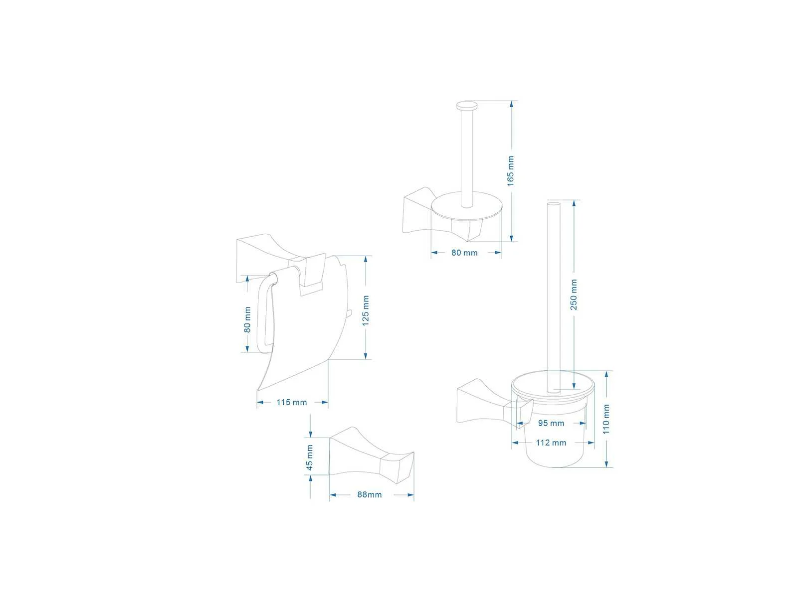 Set 4-delig, materiaal messing, kleur mat zwart, voorzien van toiletborstel met houder, toiletrolhouder met klep, reserverol houder, haak, bevestigingsmateriaal, LET OP: boven een bod van 50,- euro excl BTW en veilingkosten versturen we dit product gratis binnen de benelux naar u toe per post. Merk: Mawialux