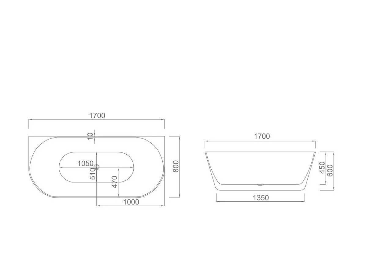 Pop-up afvoer met flexibele waterslang; onderstel verstelbaar van RVS Merk: Mawialux Kleur: Mat wit Gewicht: 50kg Lengte: 170cm Breedte: 80cm Hoogte: 60cm Materiaal: 7 mm acryl verstevigd met polyester