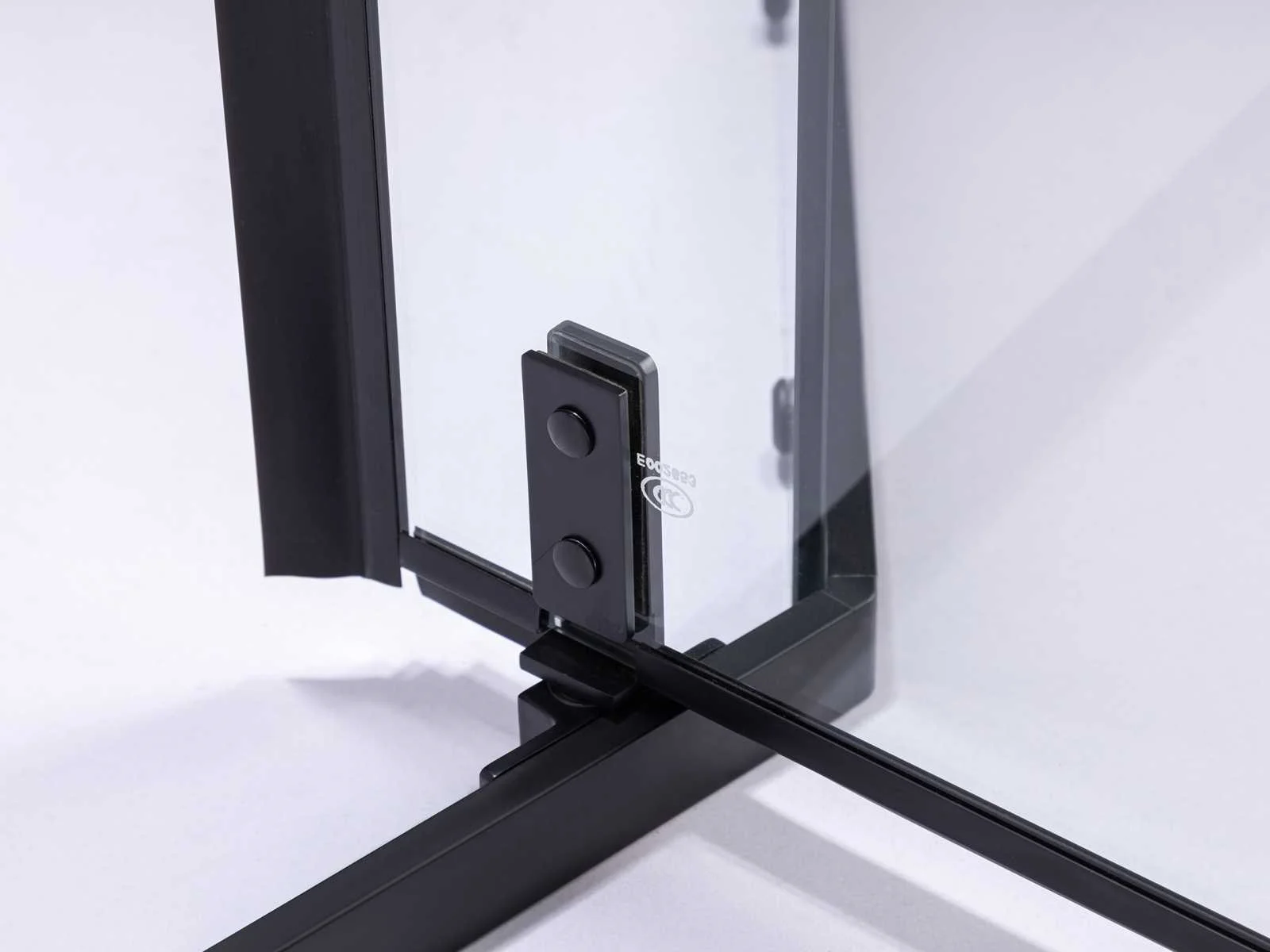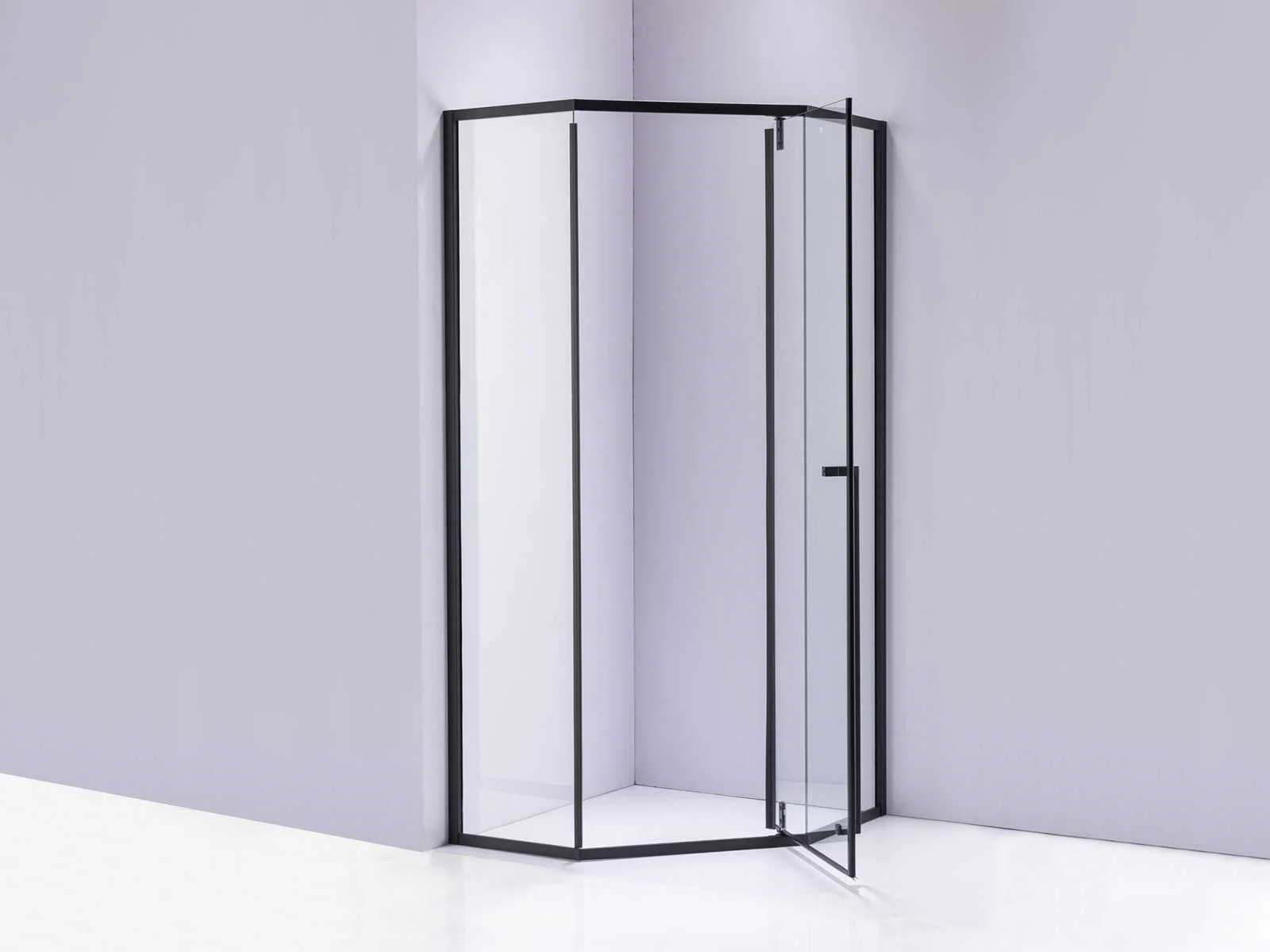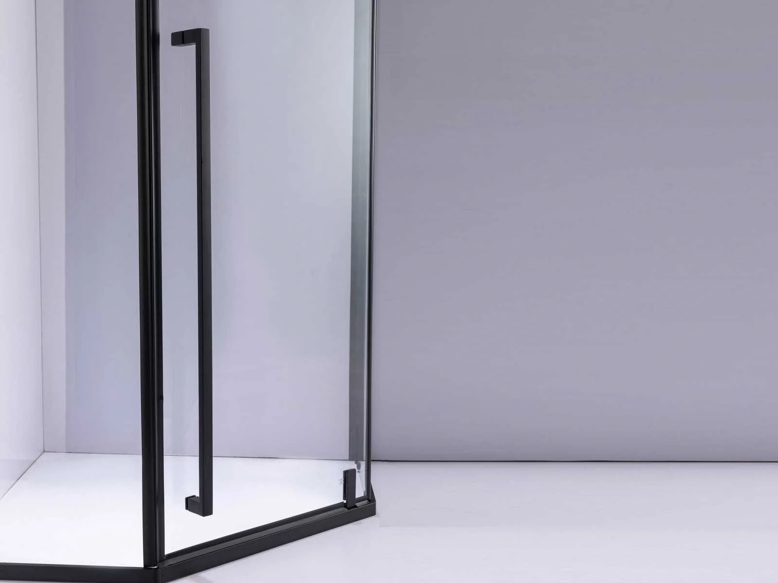 Materiaal aluminium profielen met messing ophanging en rollagers en rvs handgrepen, glas 6mm dik helder nano gecoat veiligheidsglas (vermindert kalkaanslag), draaideur, douchebak exclusief, voorzien van water afsluitstrip onder de deur - verstevigingsstang(messing) - rvs deurgrepen(mat zwart), aluminium magneetstrips aan uiteinde deur/wand - onzichtbare schroefbevestiging - bevestiging materiaal, zowel links als rechts in de hoek te monteren, wandprofiel 20 mm verstelbaar Merk: Mawialux Model: Iowa Kleur: mat zwart Lengte: 90cm Breedte: 90cm Hoogte: 200cm