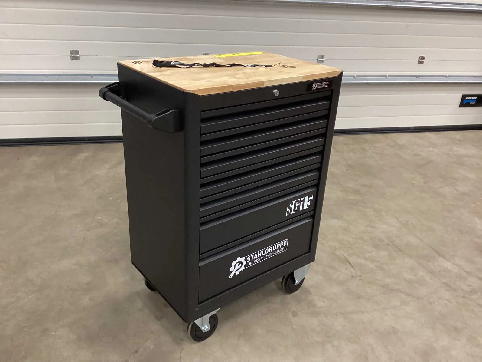 7 Laden - 6 Gevuld 259 pcs Gereedschap Stevig houten werkblad Dubbele kogellager rails voor de lades 2 zwenkwielen 1 geremd Mat zwart milieu vriendelijke poeder coating Centraal slot systeem Within 14 days Merk: Stahlgruppe Type: sg15 Kleur: zwart Lengte: 74cm Breedte: 45cm Hoogte: 98cm