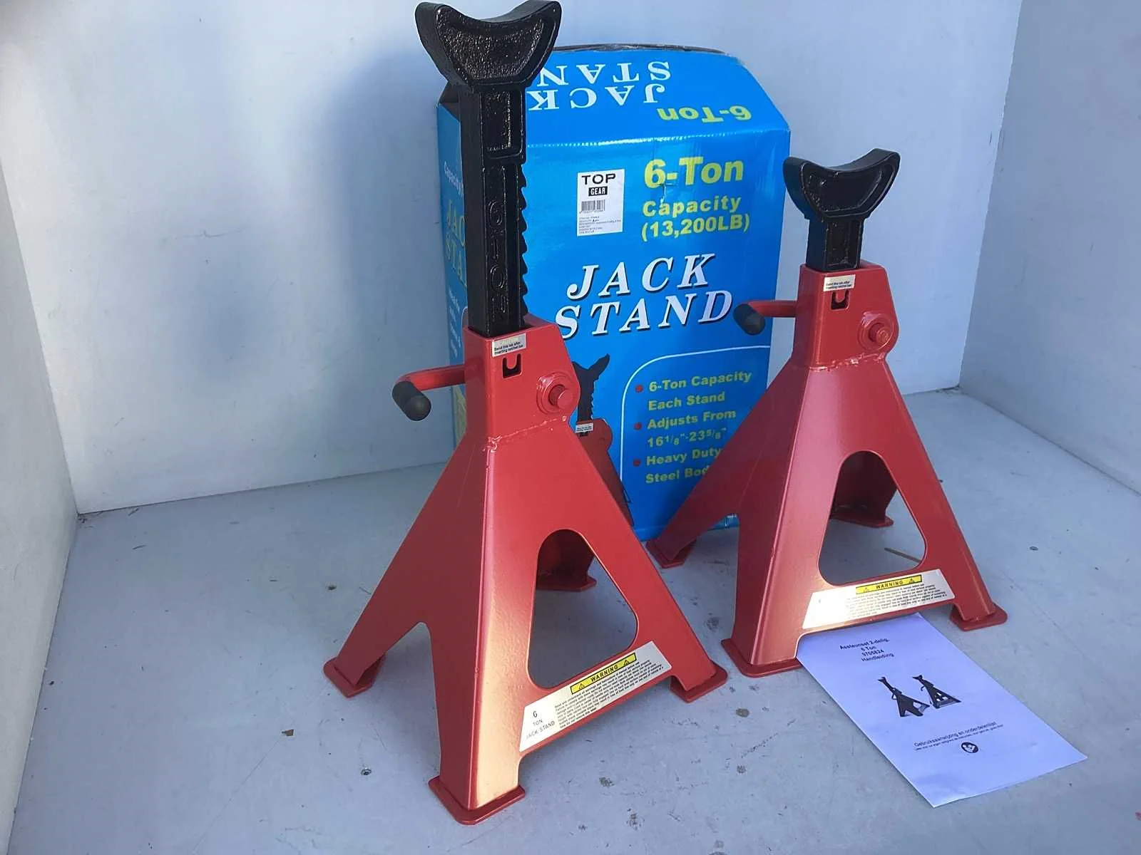 Set van 2 stuks. In hoogte verstelbare assteunen van 6 Ton. Hoogte van 38cm tot 58.5cm Als set verpakt in 1 fotodoos. Within 14 days