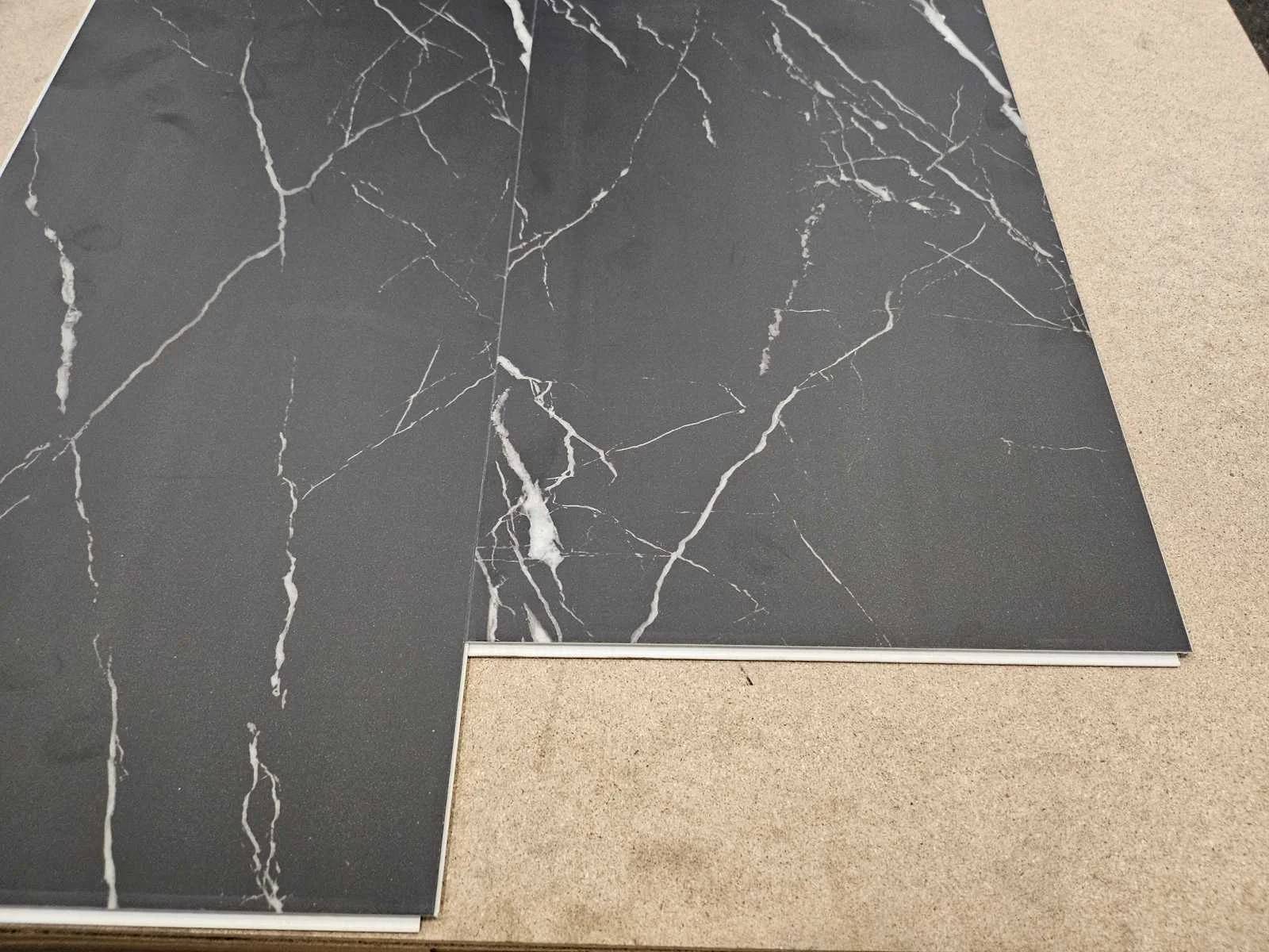 PVC click vloer, click tegel, water bestendig, vorstbestendig, ideaal voor vloerverwarming, kras en slijtvast, anti slip, 28 pakken a 2,05 m2 Merk: Airial flooring Product type: PVC Oppervlakte: 57m² Geschikt voor vloerverwarming: Ja V-groef: Nee Afwerking: Voelbaar structuur, anti slip Aantal m² per verpakking: 2.05m² Kleur: Marmor dark 808 Gewicht: 475kg Lengte: 610mm Breedte: 305mm Materiaal: PVC/SPC
