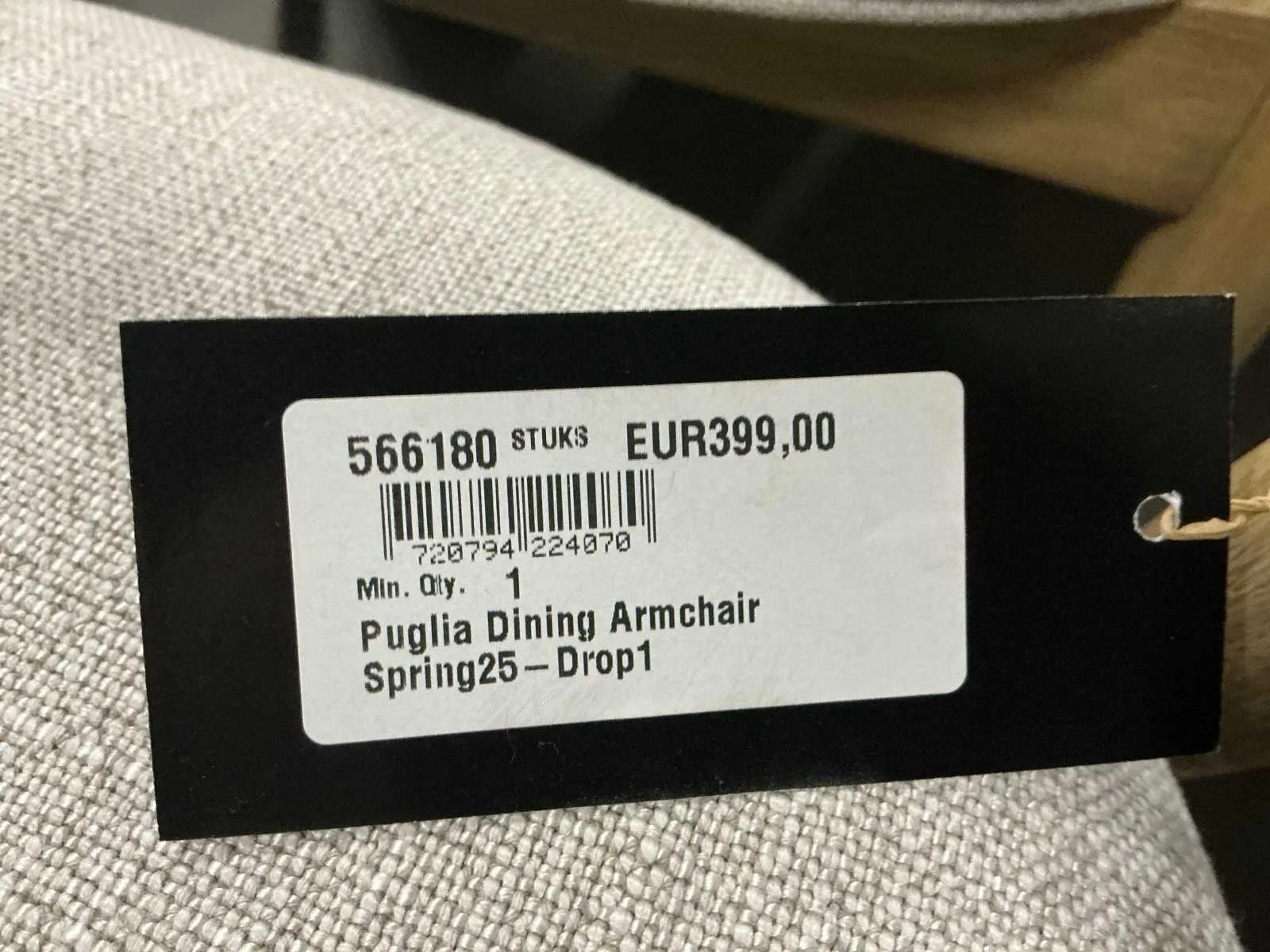 Dit kavel betreft een showmodel. Merk: Rivièra maison Model: Puglia Lengte: 48cm Breedte: 59cm Hoogte: 76cm Zithoogte: 47cm Diepte: 43cm