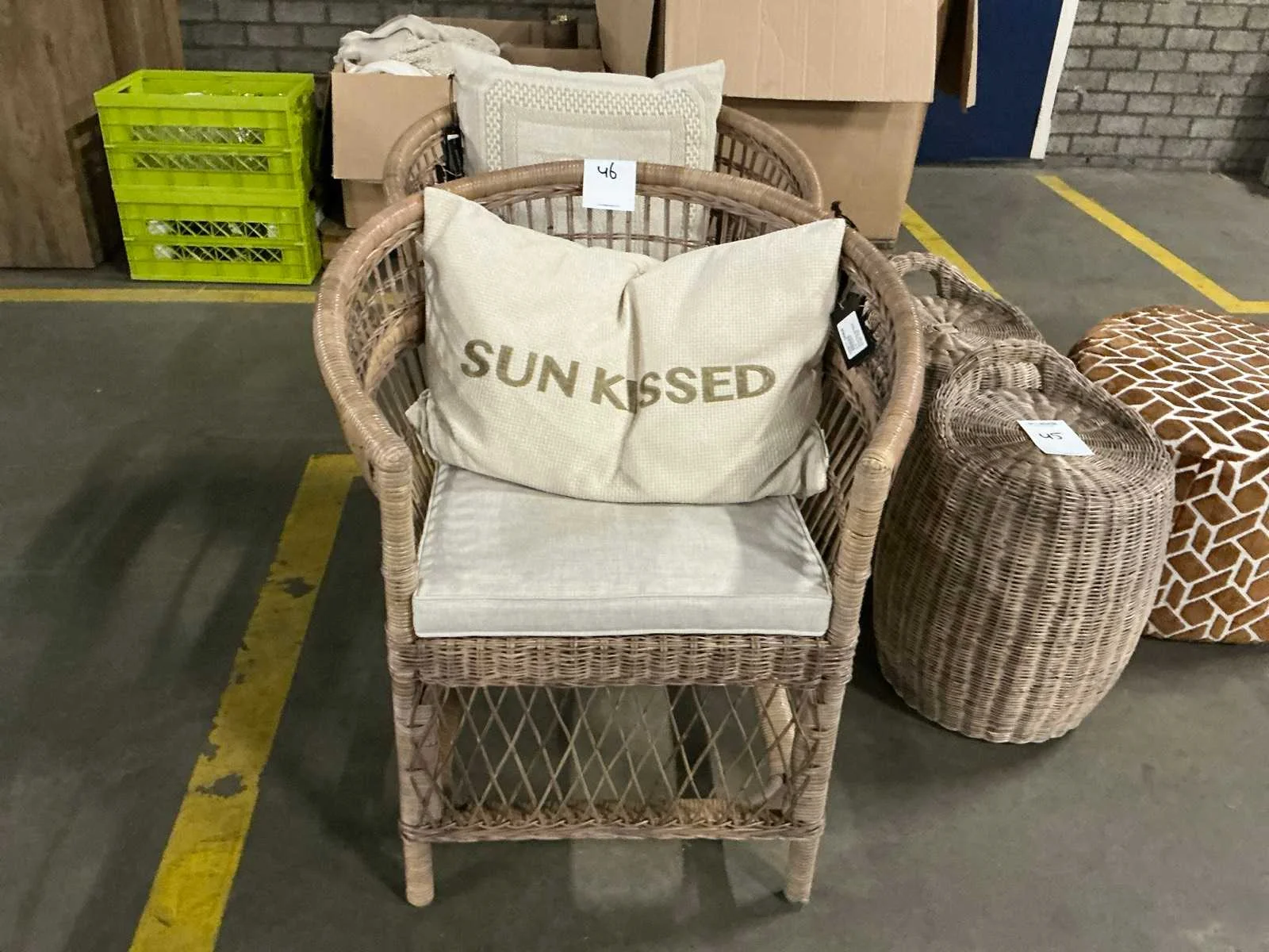 Dit kavel betreft showmodellen. Merk: Rivièra maison Lengte: 65cm Breedte: 70cm Zithoogte: 51cm