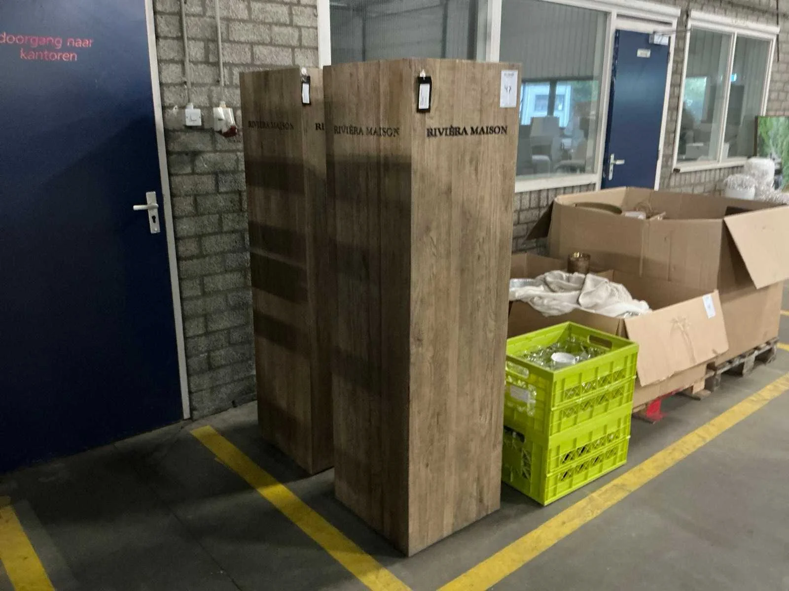 Dit kavel betreft showmodellen. Merk: Rivièra maison Model: East side Lengte: 45cm Breedte: 45cm Hoogte: 160cm Materiaal: Hout