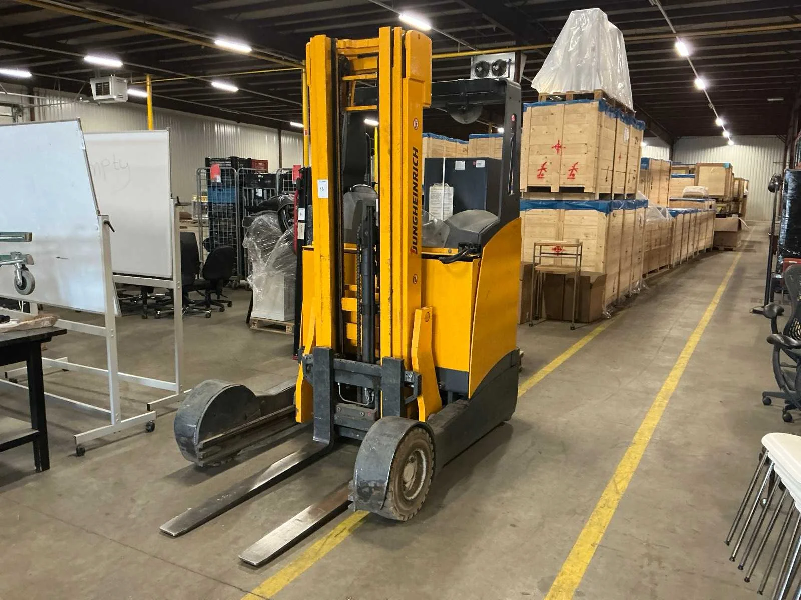 Merk: Jungheinrich Type: ETV C16 Serienummer: 91086001 Aantal wielen: 3 Afgelezen urenstand: 3044 Accu lader: true Side-shift: true Hefvermogen: 1600kg Lepellengte: 1140mm Max. hefhoogte: 5600mm Minimale doorrijhoogte: 2240mm Totale afmeting L: 2400mm Totale afmeting Breedte: 1300mm Totale afmeting Hoogte: 2250mm Elektrisch: true Vol rubber banden: true