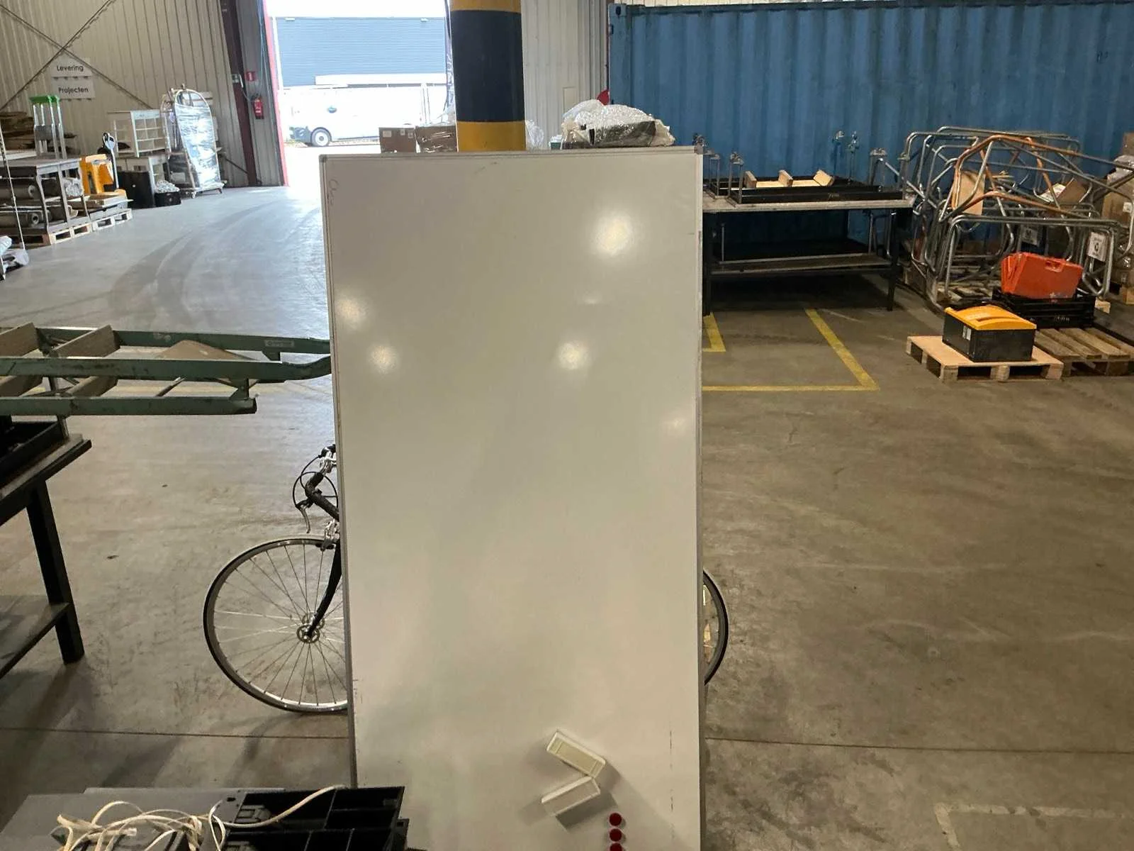 Verrijdbaar; alsook 2x diverse whiteboards voor wandmontage Lengte: 160cm Breedte: 57cm Hoogte: 195cm