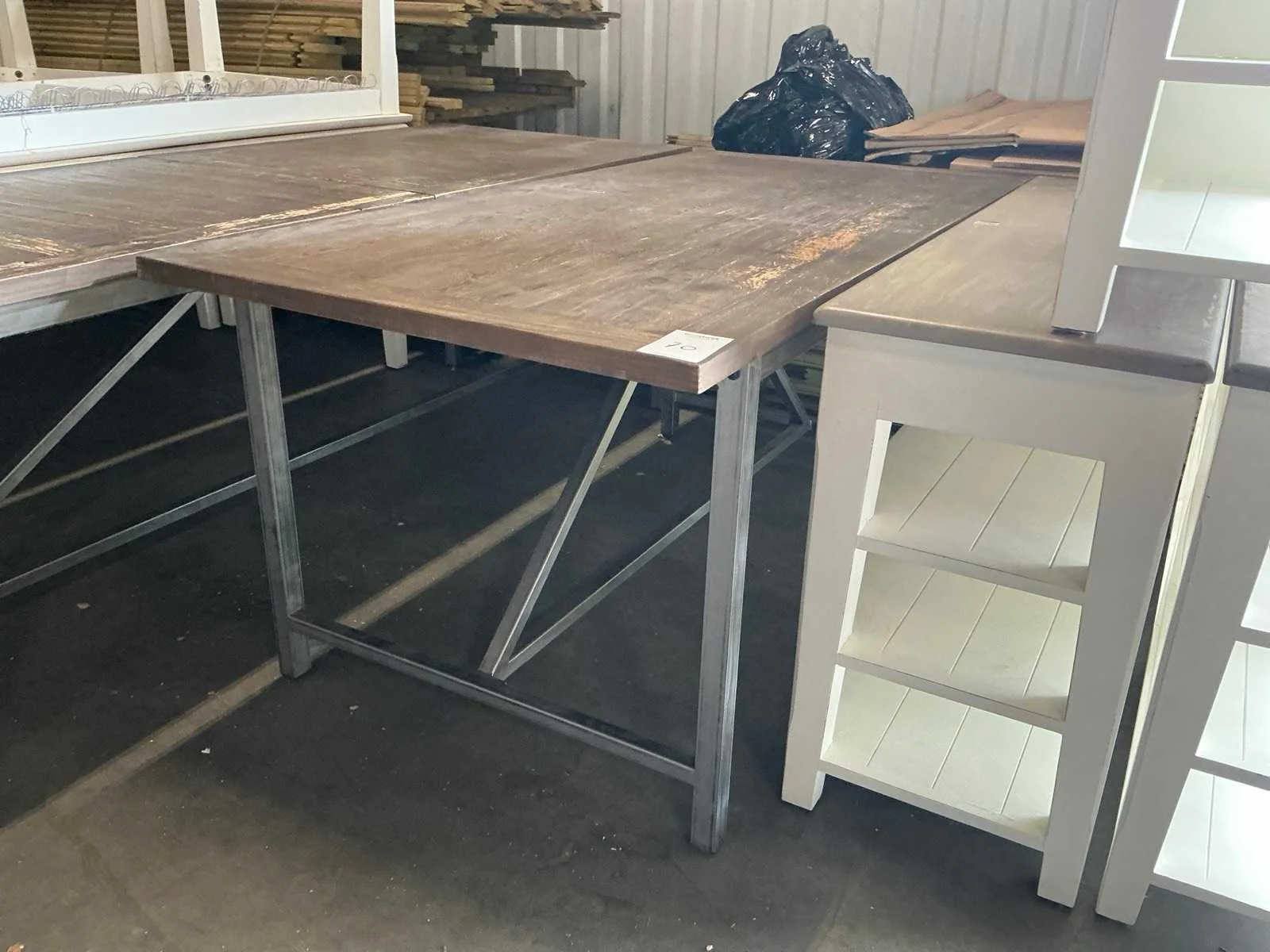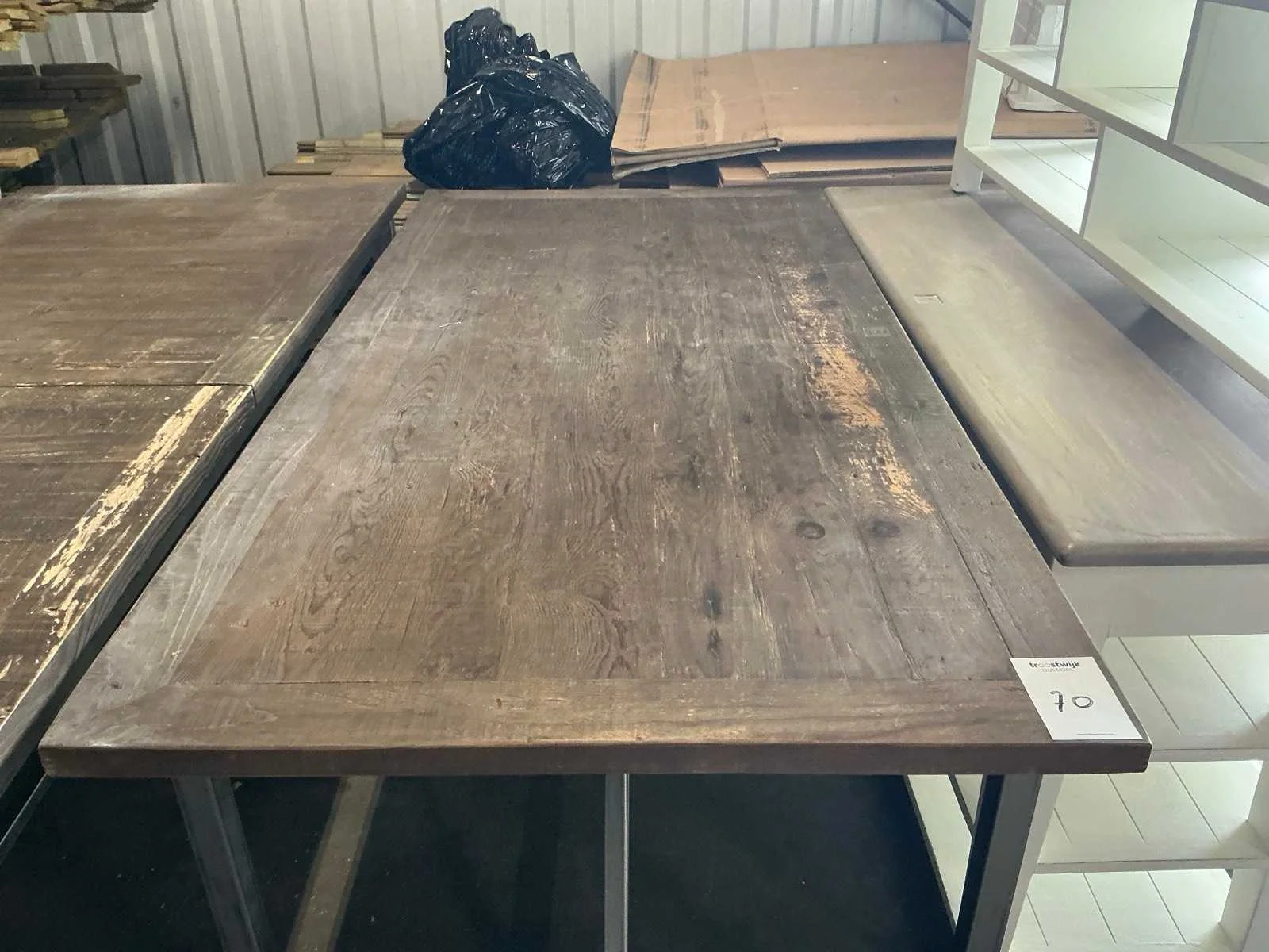 Houten blad; stalen onderframe. Merk: Rivièra Maison Lengte: 180cm Breedte: 90cm Hoogte: 80cm
